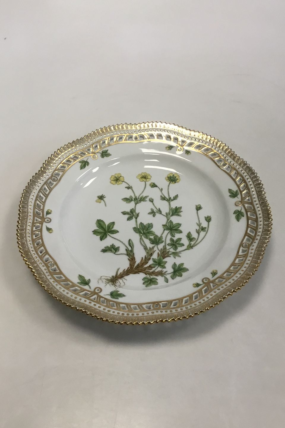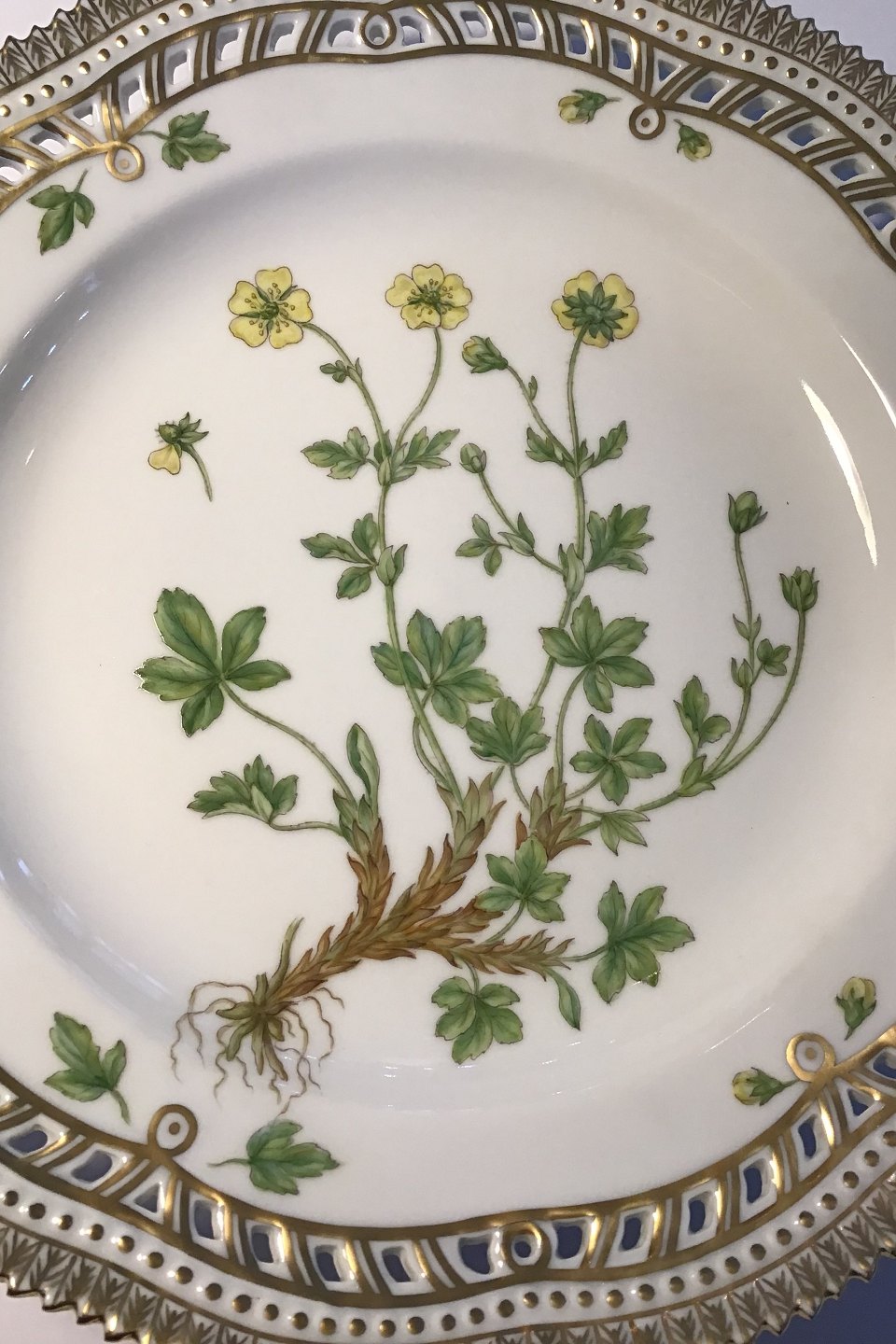Royal Copenhagen Flora Danica Plate with pierced border No 20/3553. Latin name: Potentilla Aurea L. Måler 25.5 cm / 10 3/64 in.