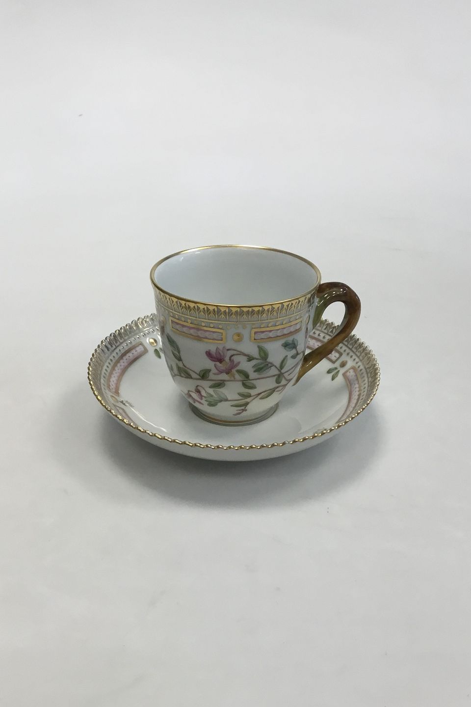 Royal Copenhagen Flora Danica Kaffekop og Underkop No 20/3597. Latinsk Navn: Oxycoccus palustris Rups. Måler Kop: 7 cm x 7,5 cm dia. Underkop: 13,8 cm