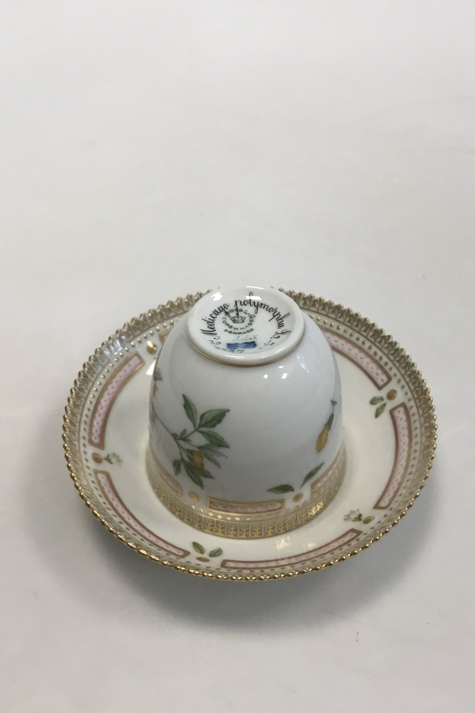 Royal Copenhagen Flora Danica Coffee Cup and Saucer No 20/3597. Latin Name: Medicaga polymorpha L. Measures Cup: 7 cm / 2 3/4 in. x 7.5 cm / 2 61/64 in. dia. Saucer: 13.8 cm / 5 7/16 in.