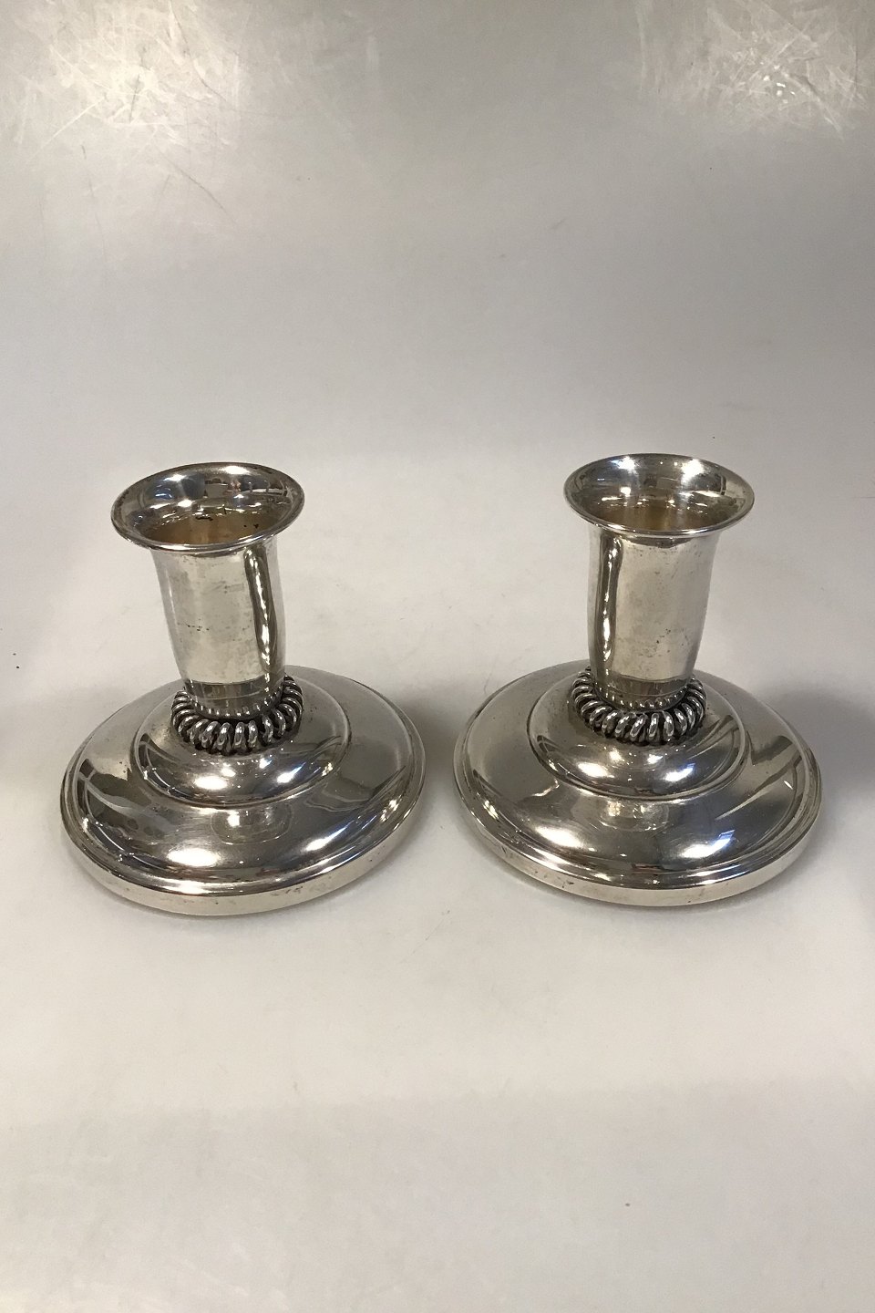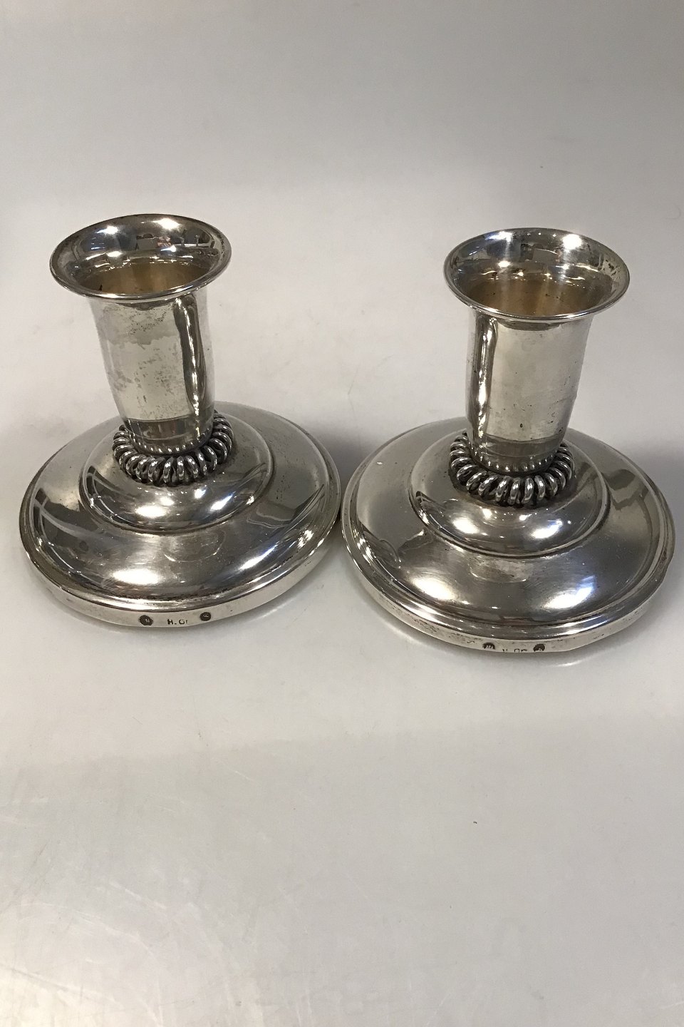 Danske Sølv Lysestager, Hugo Grün (2) Måler H 8 cm( 3 5/32 in) Samlet vægt 318.8 gr/11.25 oz (Udfyldte) Brugsspor