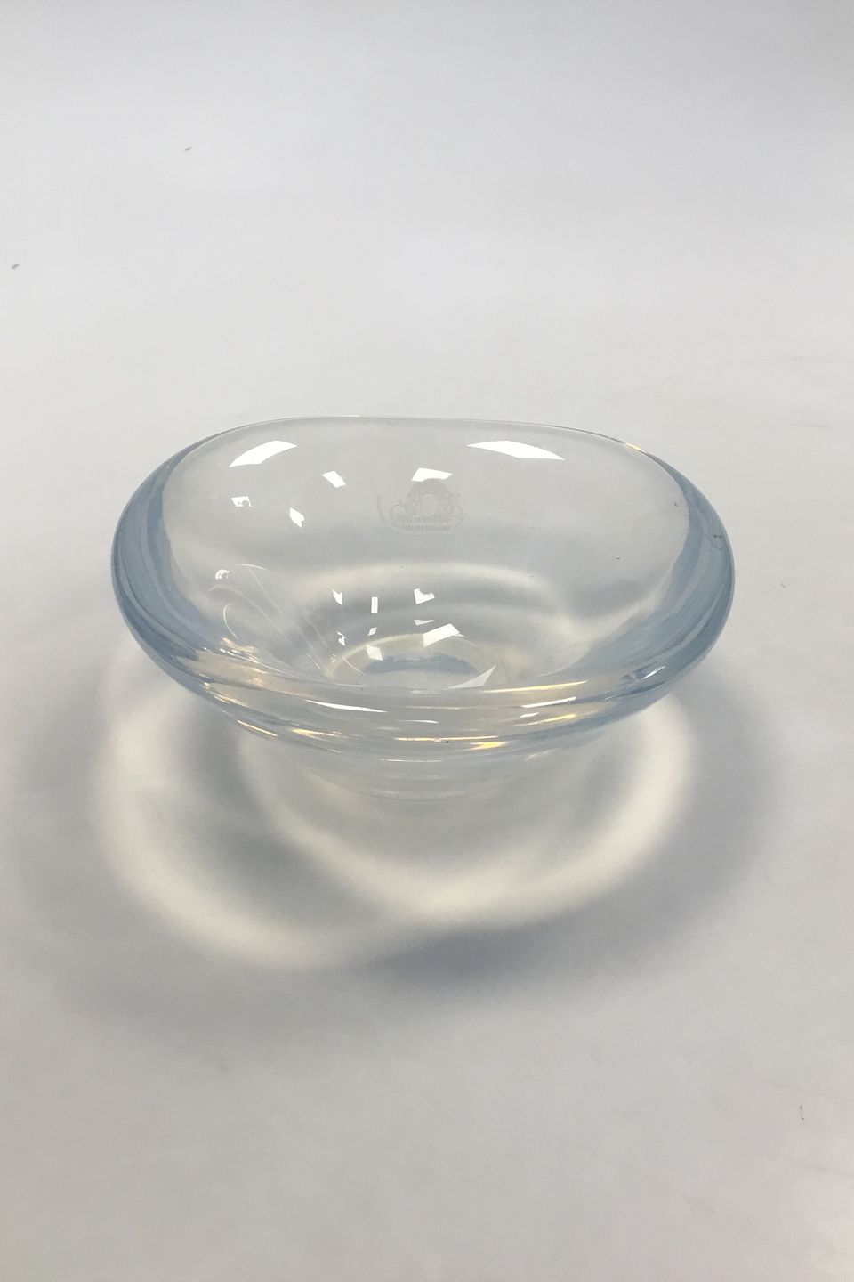 Orrefors Glasskål med logo fra LYFA Belysningsvirksomhed. Måler 14,5 cm (5 45/64 in). Opaque-hvidt glas. Slidt i bunden.