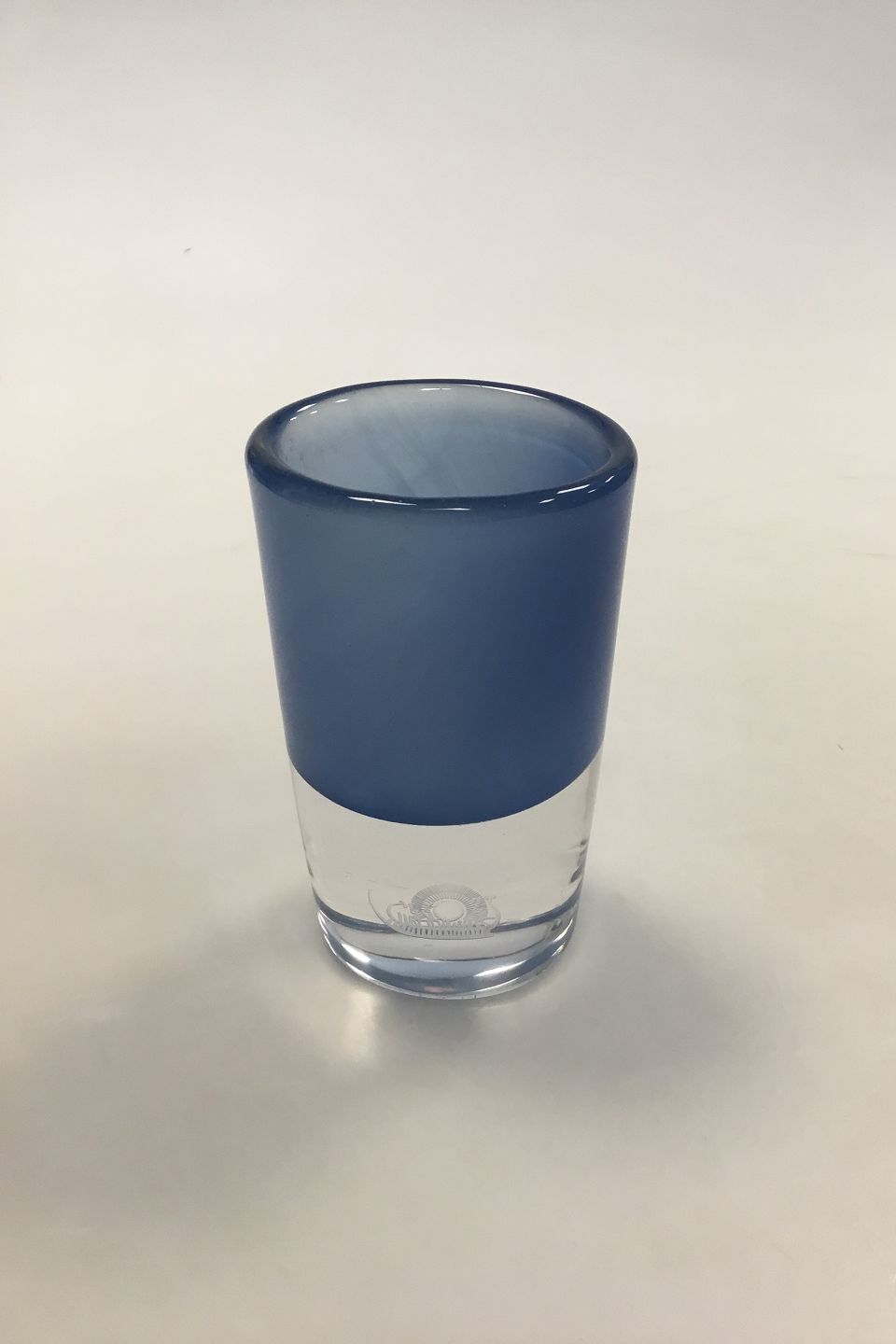 Orrefors Glasvase med logo fra LYFA Belysningsvirksomhed. Måler 5,5 x 7,5 x 12 cm (2 11/64 x 2 61/64 x 4 23/32 in).