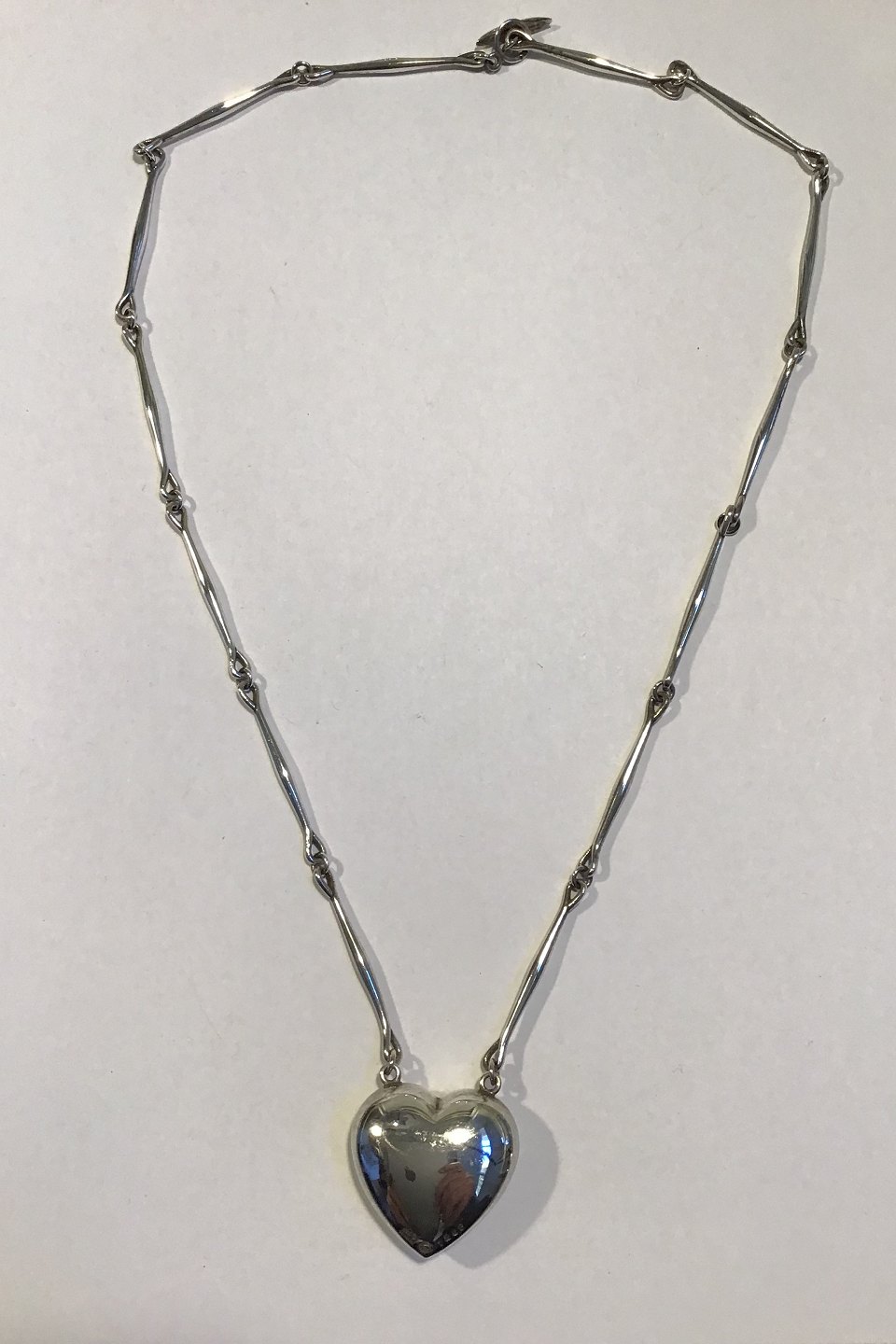 Georg Jensen Sterling Silver Necklace with small Heart Pendant No 126B Astrid Fog Measures Chain 66 cm (25.98 in) Pendant 3 cm x 3 cm (1.18 inch x 1.18 inch) Combined weight 44.5 gr/1.57 oz