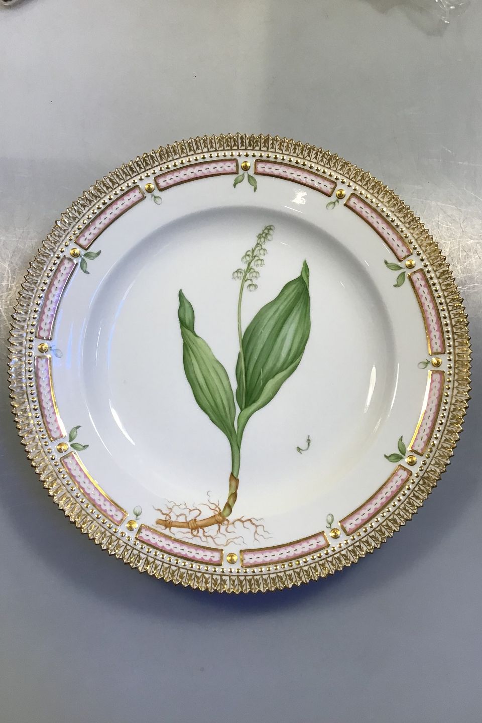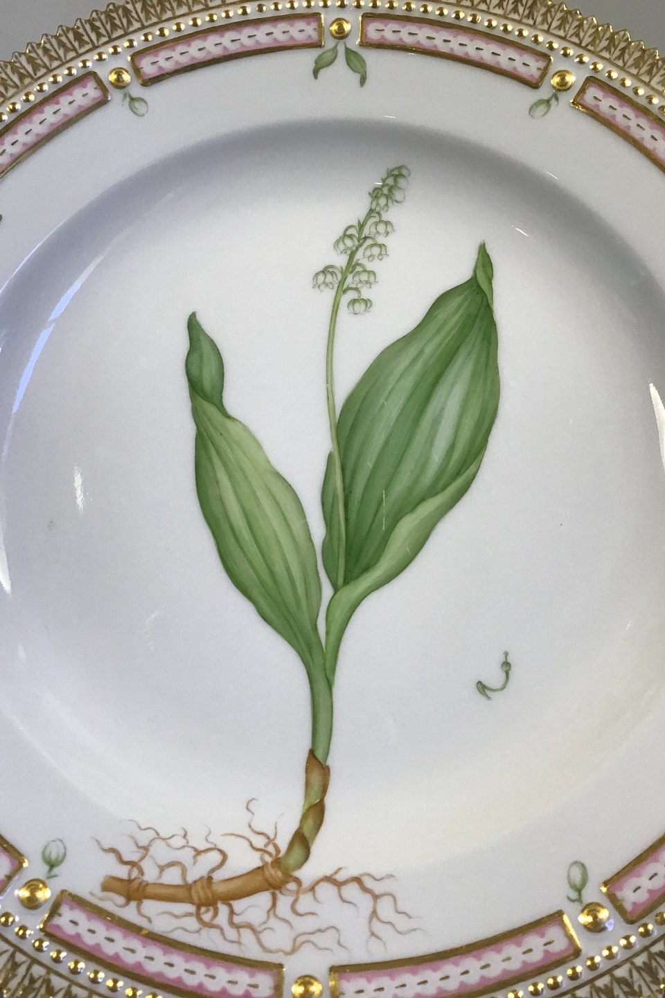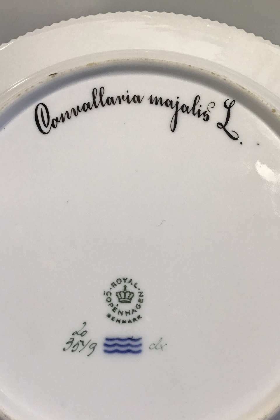 Royal Copenhagen Flora Danica Spisetallerken No 3549. Måler Diam 26 cm. (10 15/64 in) 1. Sortering. Latinsk Navn: Convallaria Majalis L.