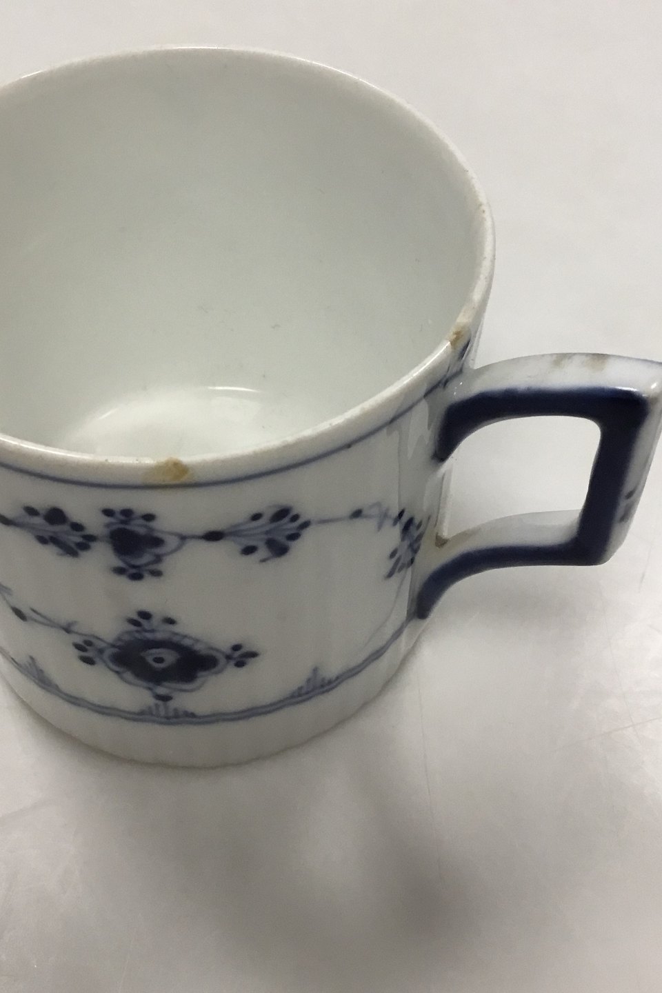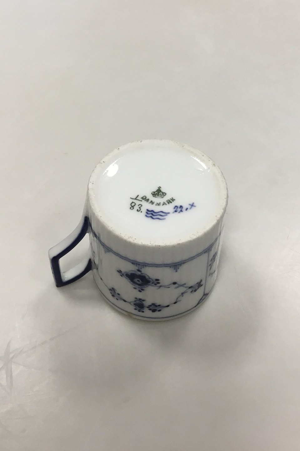 Royal Copenhagen Musselmalet Riflet Chokoladekop No 83. Måler 6 cm(2 23/64 in.) Fra 1894-1900. Den har et par små chips på kanten