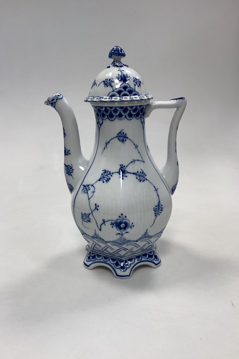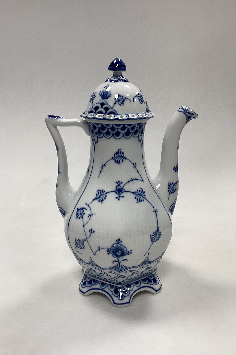 Royal Copenhagen Blue Fluted Full Lace Hexagonal Coffee Pitcher No. 128 / Lid No. 127. Measures 29 cm / 11.41 in. 1st Quality.