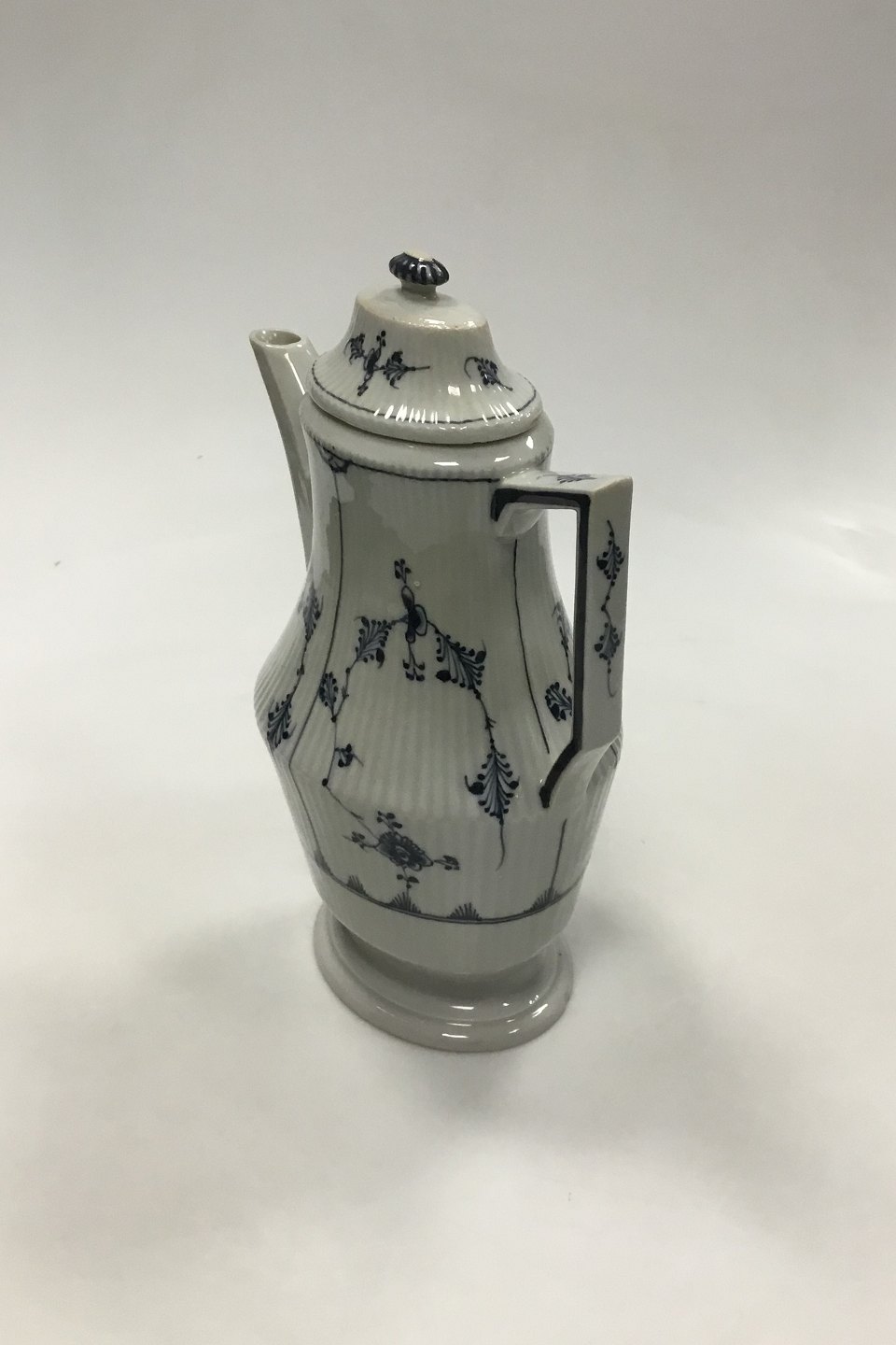 Royal Copenhagen Antique Blue Fluted Coffee Pitcher No 2029. 1st Quality. Measures 25.5 cm / 10 3/64 in. Has a chip on the foot.