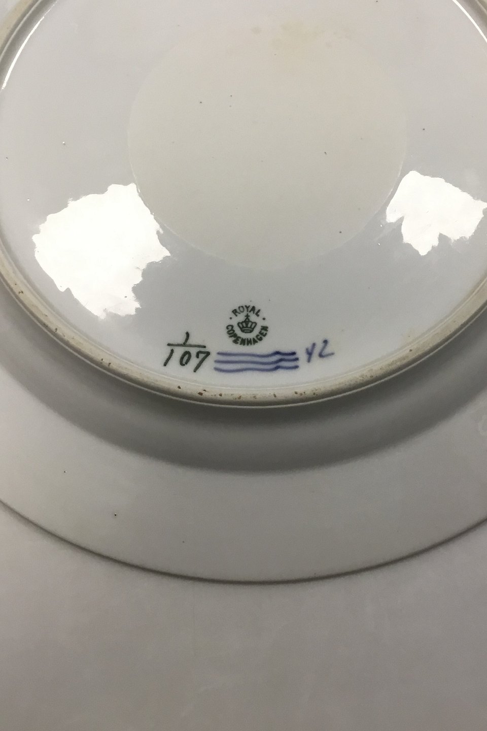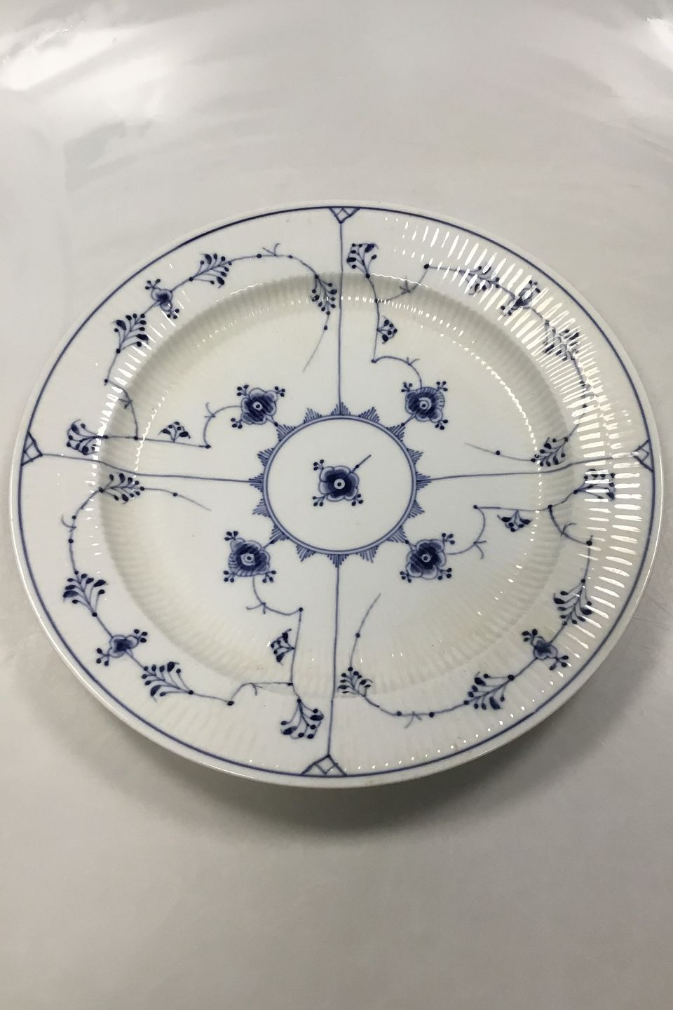 Royal Copenhagen Musselmalet Riflet stort rundt fad No 107. 1. sortering. Måler 32,5 cm ( 12 51/64 in. )