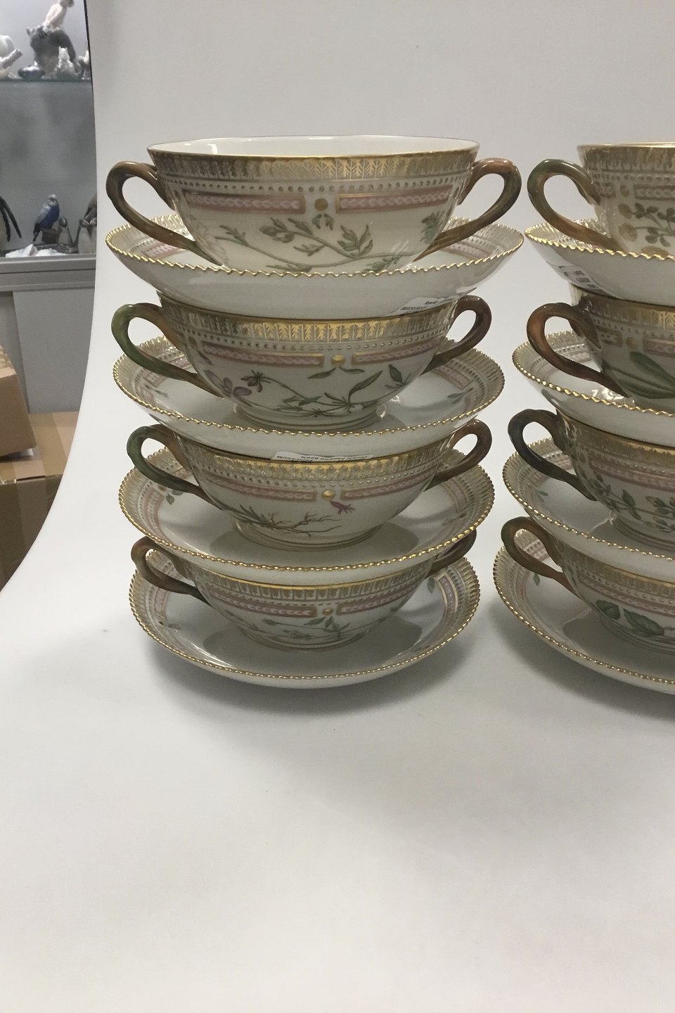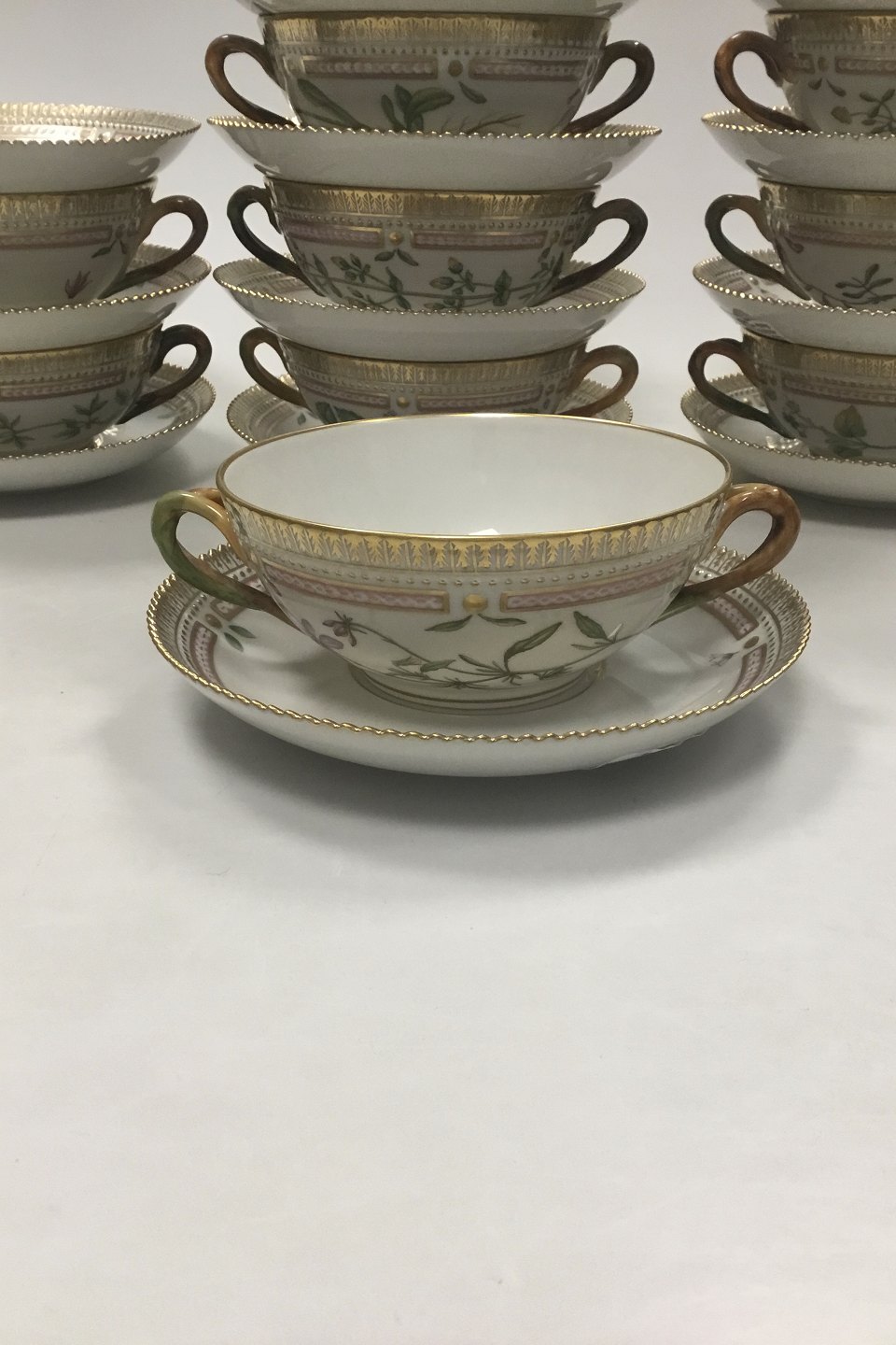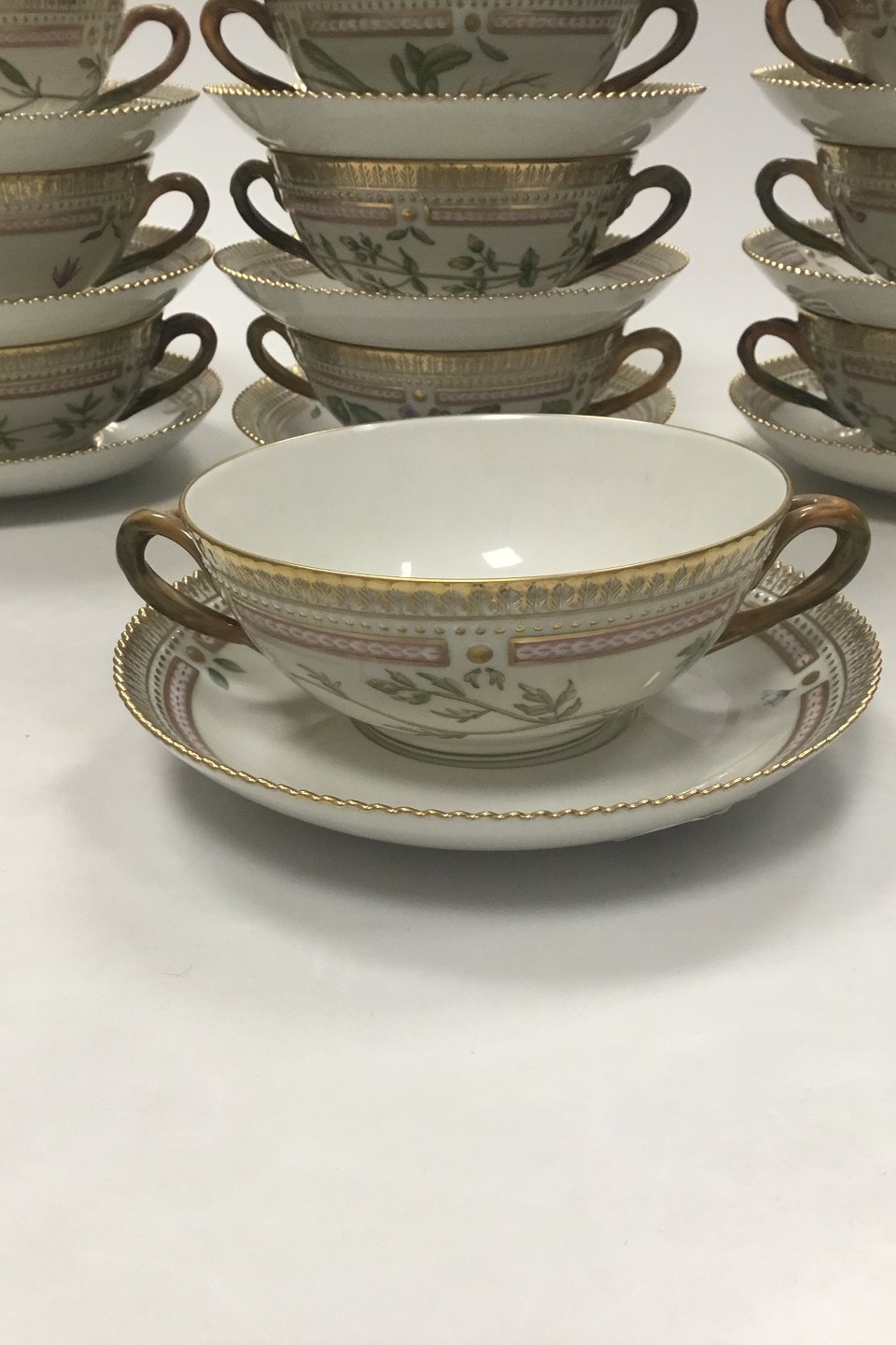 Sæt på 12 Royal Copenhagen Flora Danica Bouillon Kopkoper med underskål No 20/3612