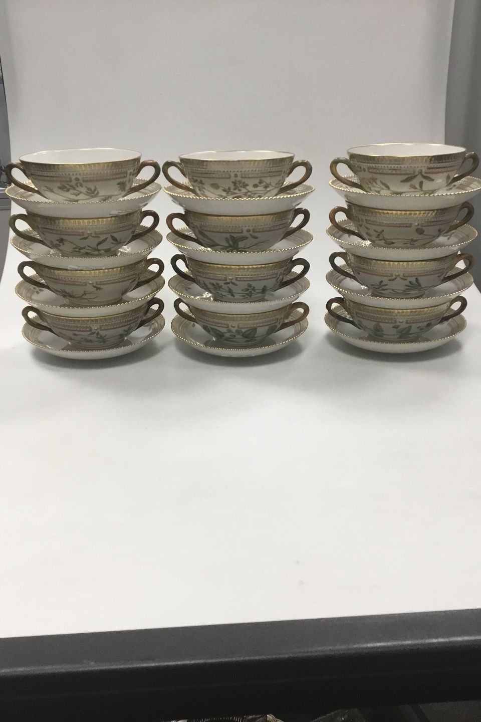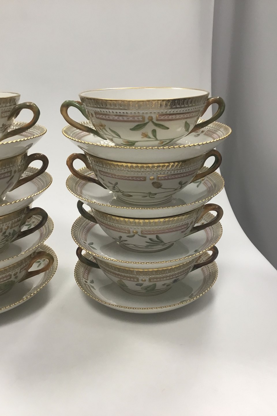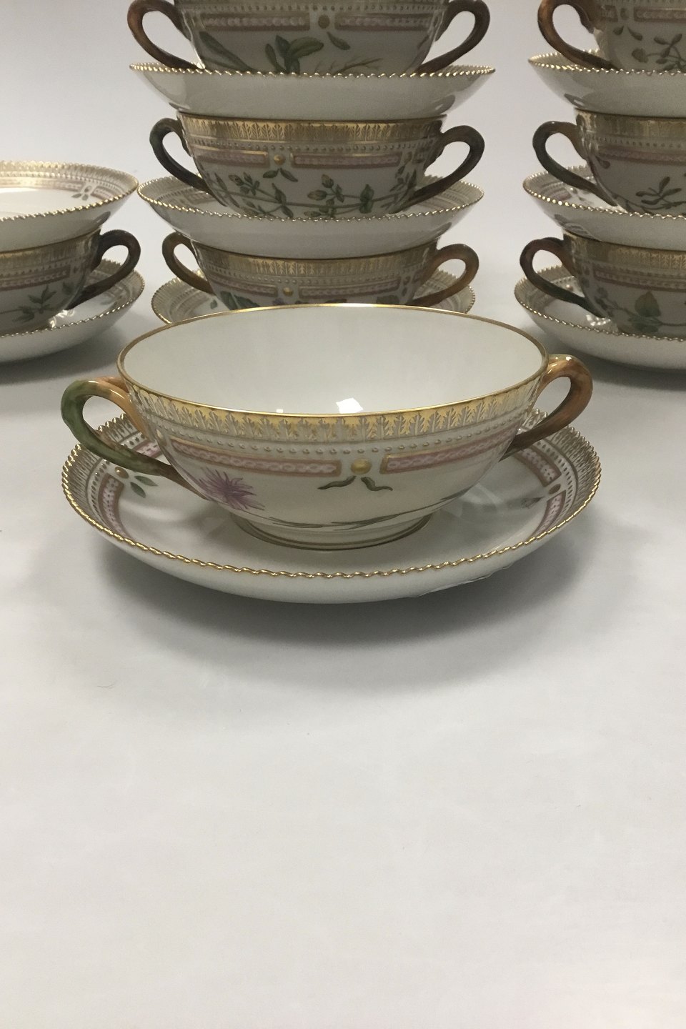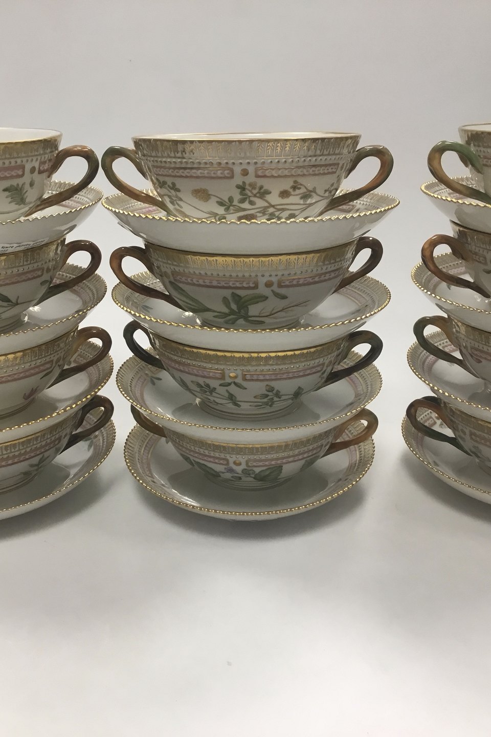Sæt på 12 Royal Copenhagen Flora Danica Bouillon Kopkoper med underskål No 20/3612