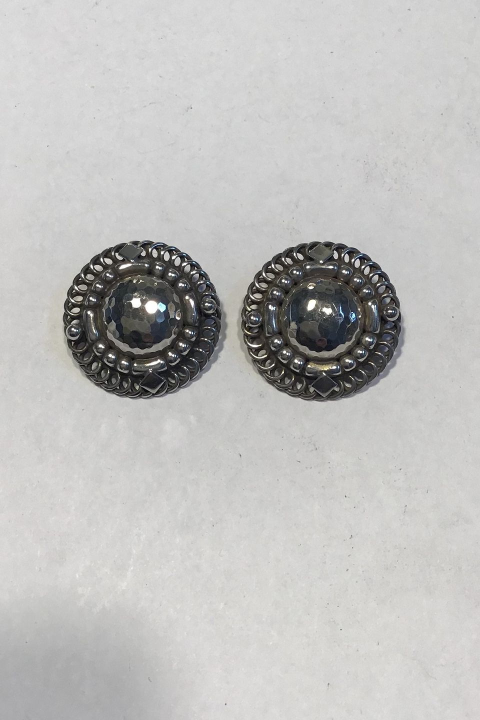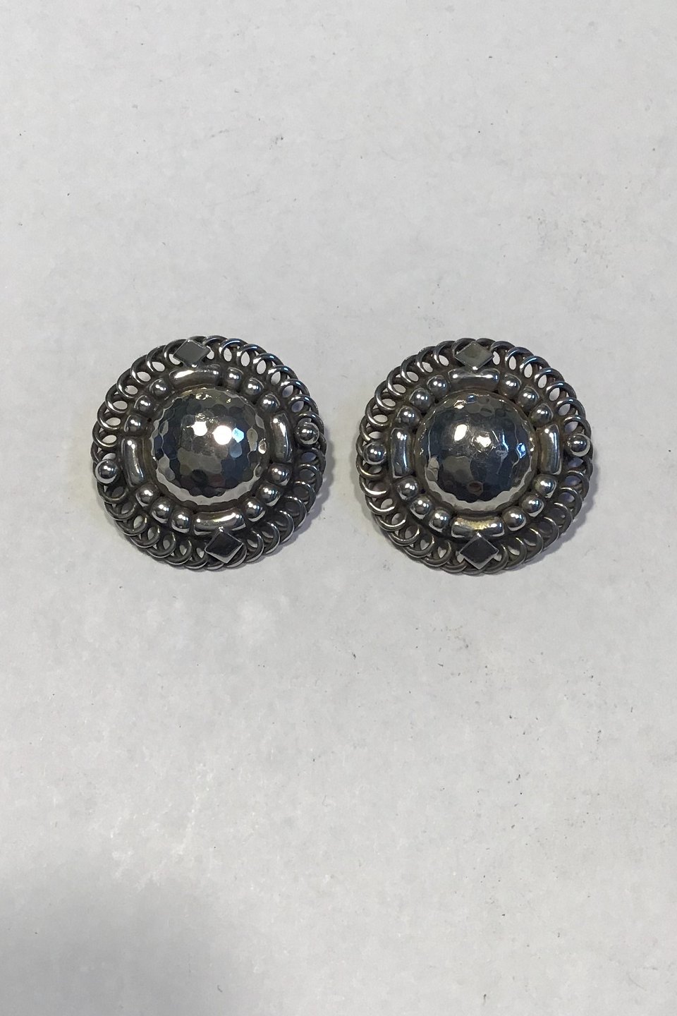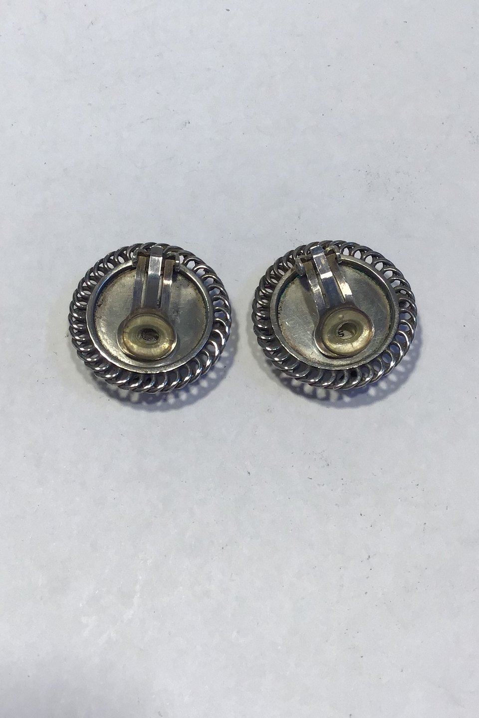 Georg Jensen Sterling Silver Earrings No 85. Silver Stone Clips Measures Diam 2.9 cm (1.14 inch) Combined Weight 21.7 gr (0.77 oz)