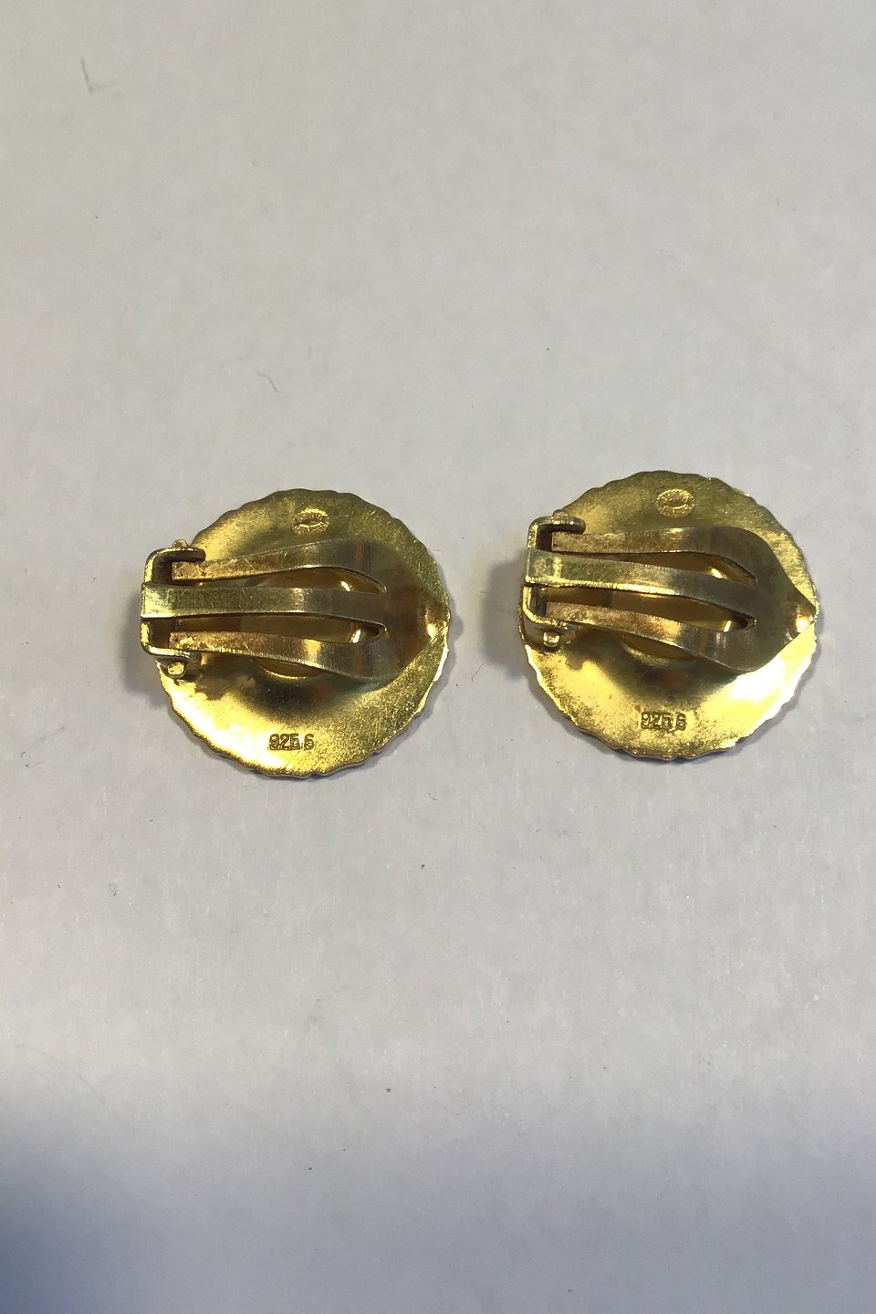 Georg Jensen Forgyldt Sterling Sølv Marguerit Øreringe (Clips) Måler Diam 1.8 cm ( 0.70 inch) Samlet Vægt 7.0 gr / 0.25 oz