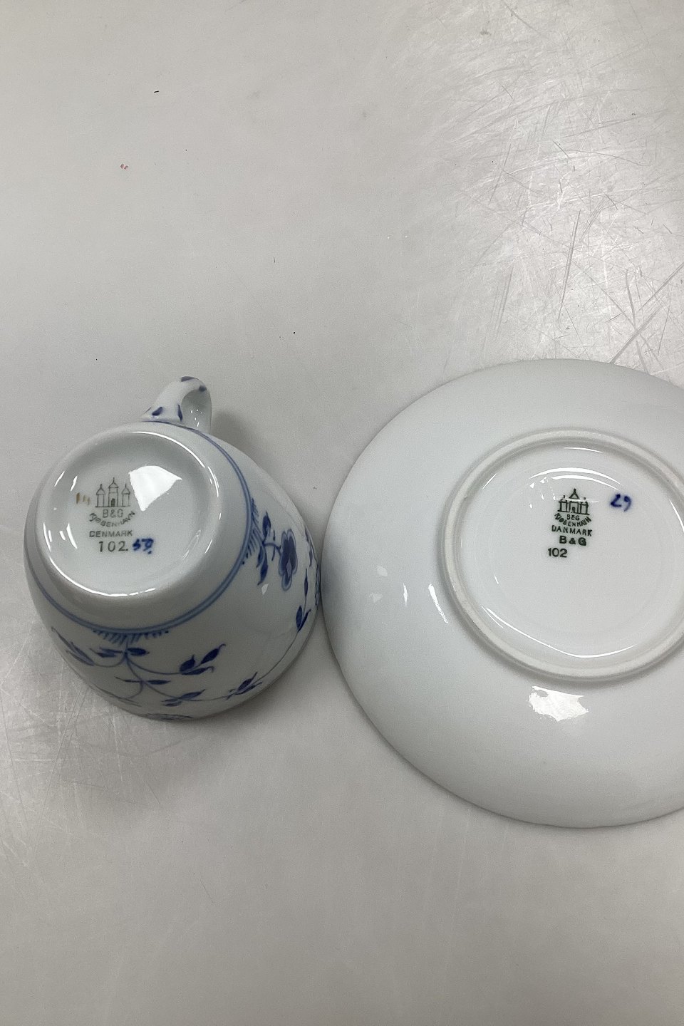 Bing & Grøndahl Sommerfugl med guld Kaffekop og Underkop No 102. Kop måler 6,3 x 7,8 cm (2 31/64 x 3 5/64 in). (underkop unden guld )