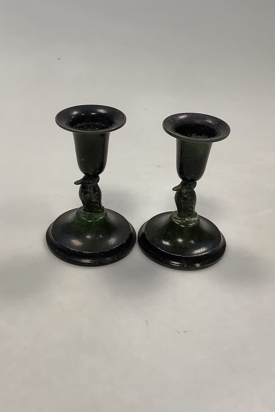 Et par Dansk små bronze stager med fulge motiv