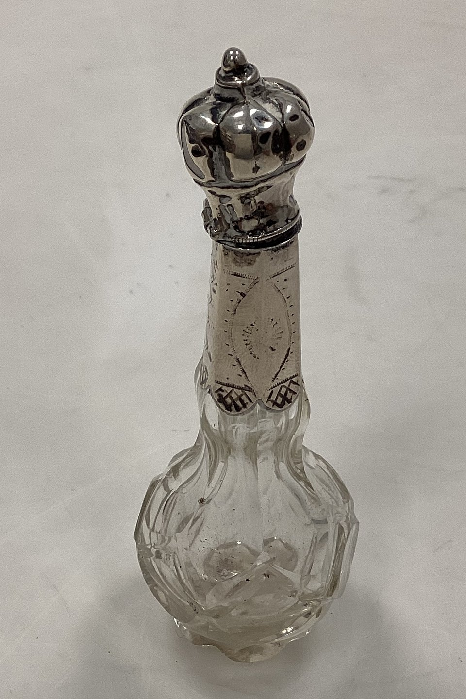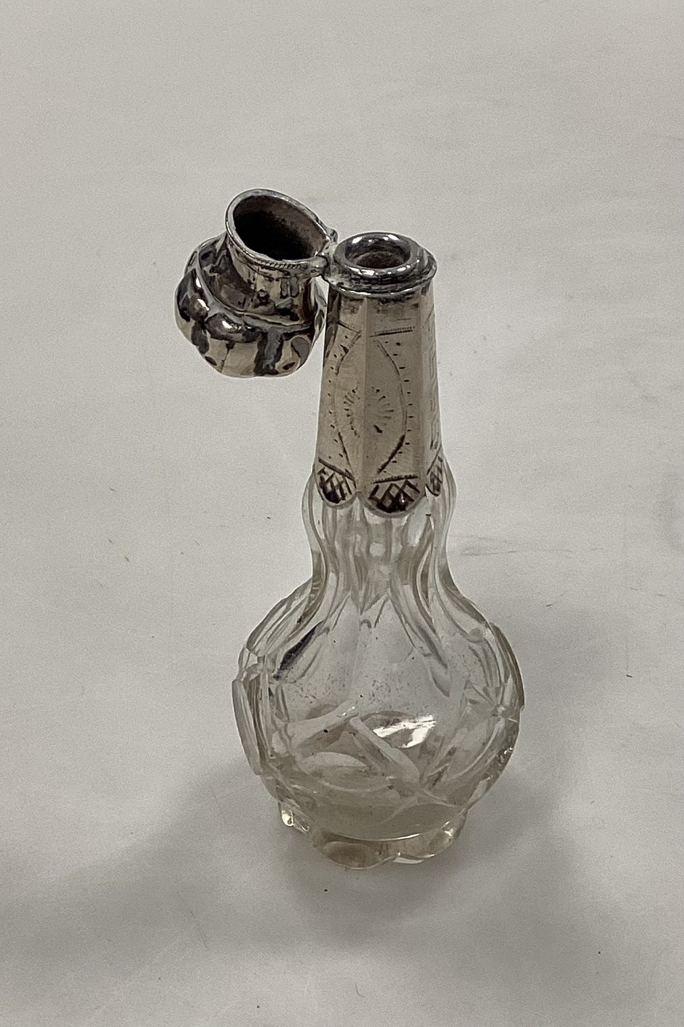 Parfumeflacon i glas med sølvmontering 19. århundrede. I god stand. Sølvmontering lidt skæv, som billederne viser ! H. 12 cm (4.72 inch)