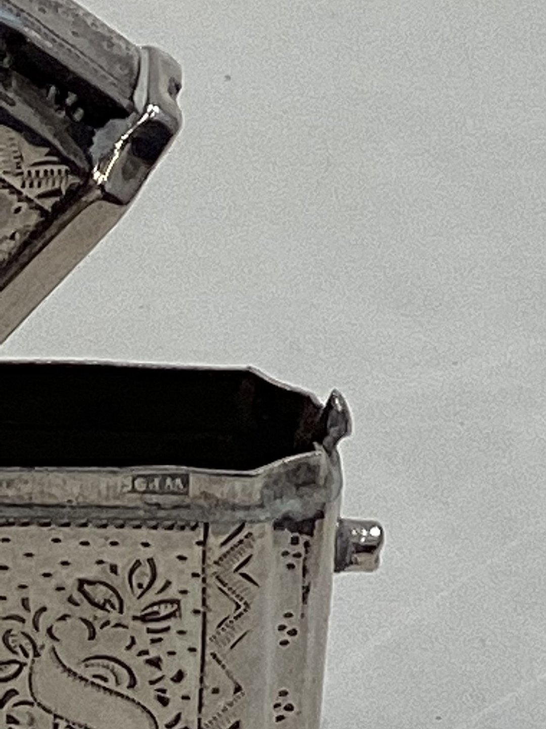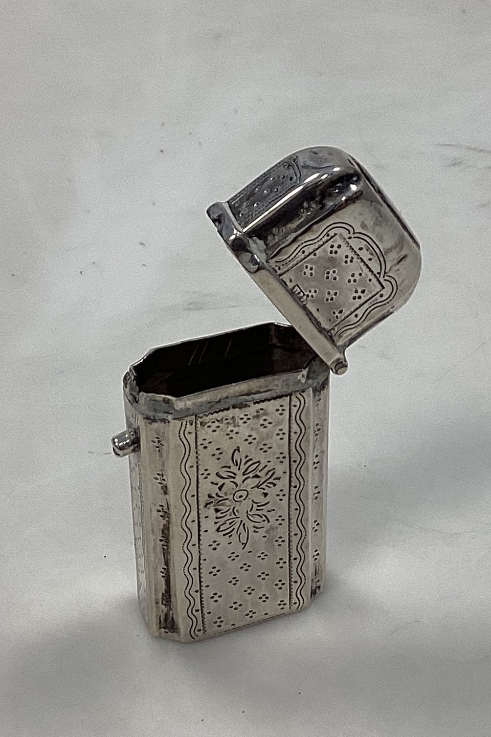 Beholder boks i sølv til tændstikker. Fremstillet i anden halvdel af 19. århundrede. Mestermærke stemplet. H. 6.5 cm (2.55 inch)