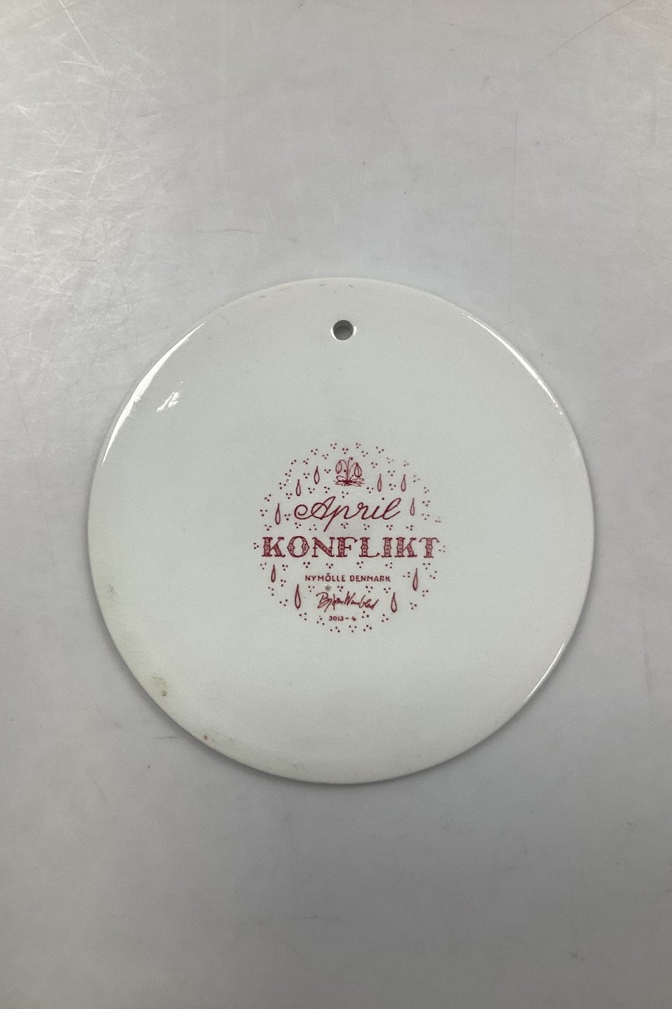 Rød månedsplatte i fajance for april - KONFLIKT. Designet af Bjørn Wiinblad for Nymølle. I god stand. Fabriksmærket på bagsiden. Mål: 15 cm (5.90 inch.)
