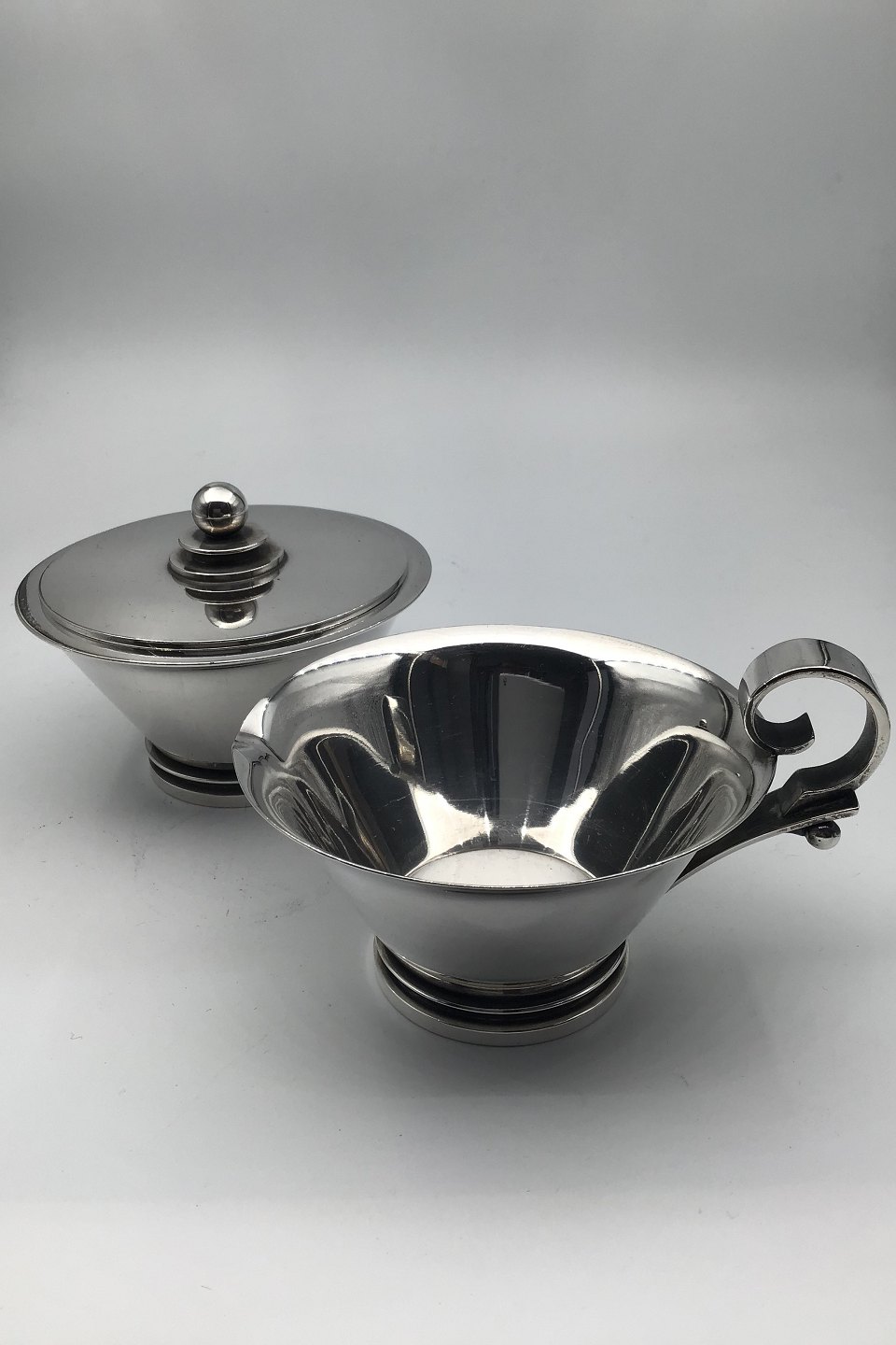 Georg Jensen Sterling Sølv Pyramide Flødekande og Sukkerskål No 600A Måler H 7 cm /2.75 inch Samlet vægt 374 gr / 13.19 oz