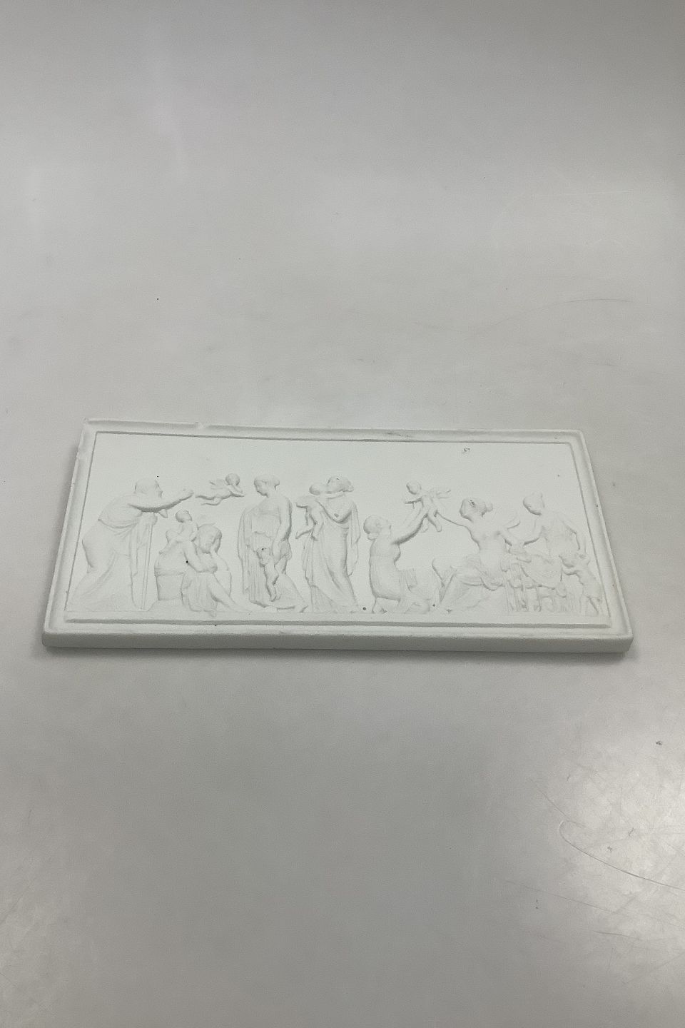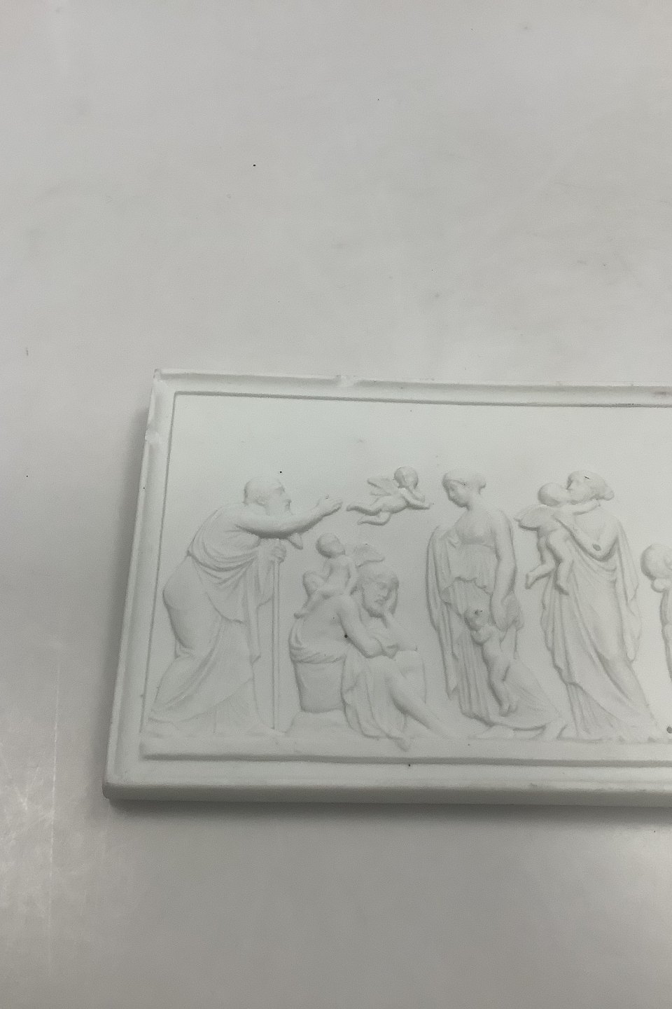 Bing and Grondahl Biscuit "The ages of Love" No 115. Copy og relief modeled in Rome in 1824. Measures 12 cm / 4 23/32 in. x 24.5 cm / 9 41/64 in. Several chips on Edge