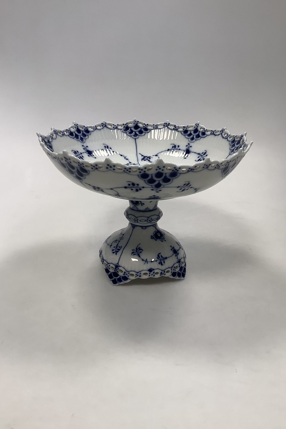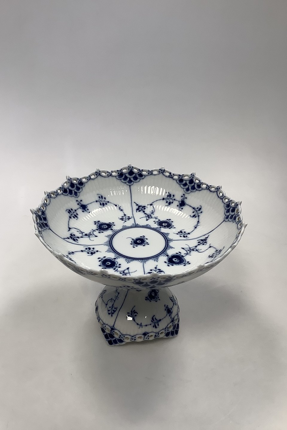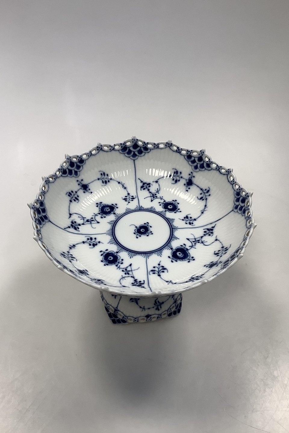 Royal Copenhagen Blue Fluted Full Lace Cake Bowl on Foot No 1020. 14.5 x 20.5 cm (5 45/64" x 8 5/64")