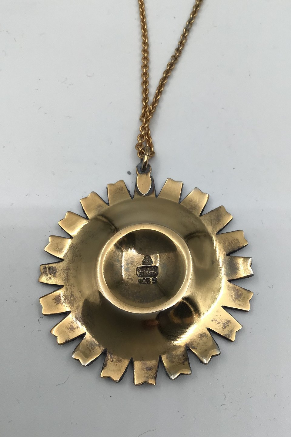 A. Michelsen Gilt Sterling Silver Marguerit (Daisy) Pendant Measures Diam 4.2 cm (1.65 inch) Weight 16.6 gr / 0.59 oz (Gilt chain 42 cm(16.53 inch) included)