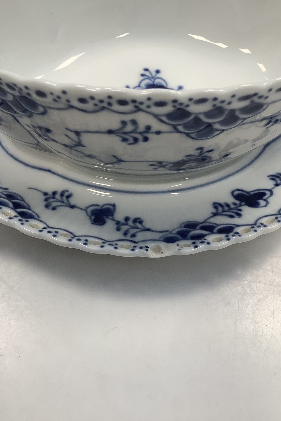 Royal Copenhagen Blue Fluted Full Lace Sauceboat with attached underplate No 1105. 24 cm (9 29/64")