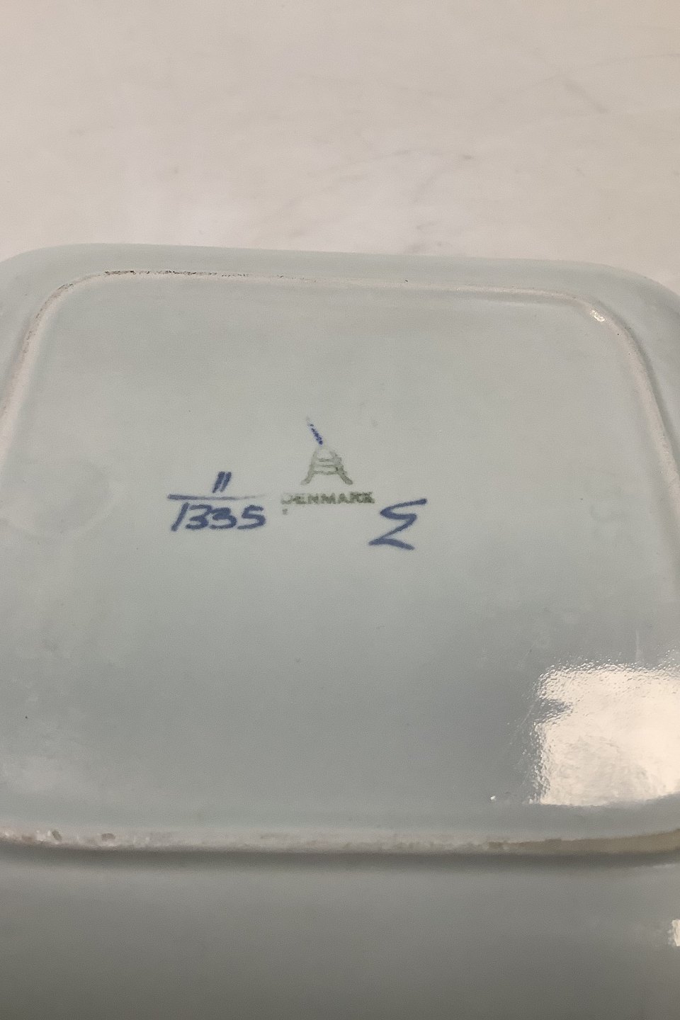 Royal Copenhagen / Aluminia Blå Tranquebar Firkantet Skål No 1335