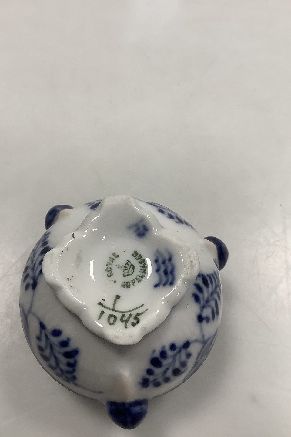 Royal Copenhagen Blue Fluted Full lace Vase with Snails No 1045. From 1898-1923. 1st Quality and in perfect condition. Measures 4.3 cm / 1 11/16 in. x 6 cm / 2 23/64 dia.