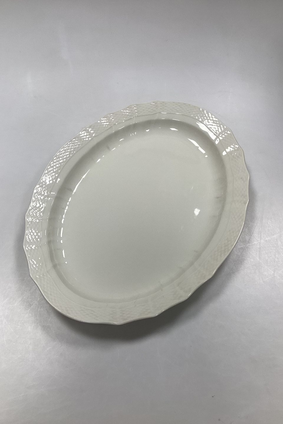 Royal Copenhagen Josephine Creme Curved Oval Serving Platter. Measures 44 cm x 33.5 cm / 17.32 in. x 13.18 in.