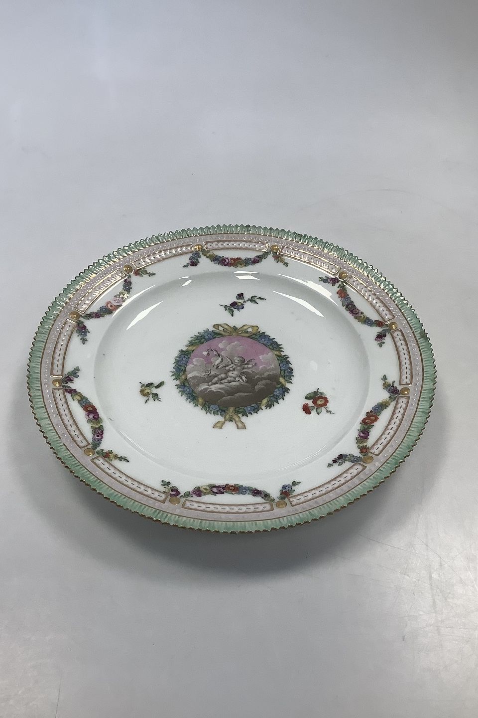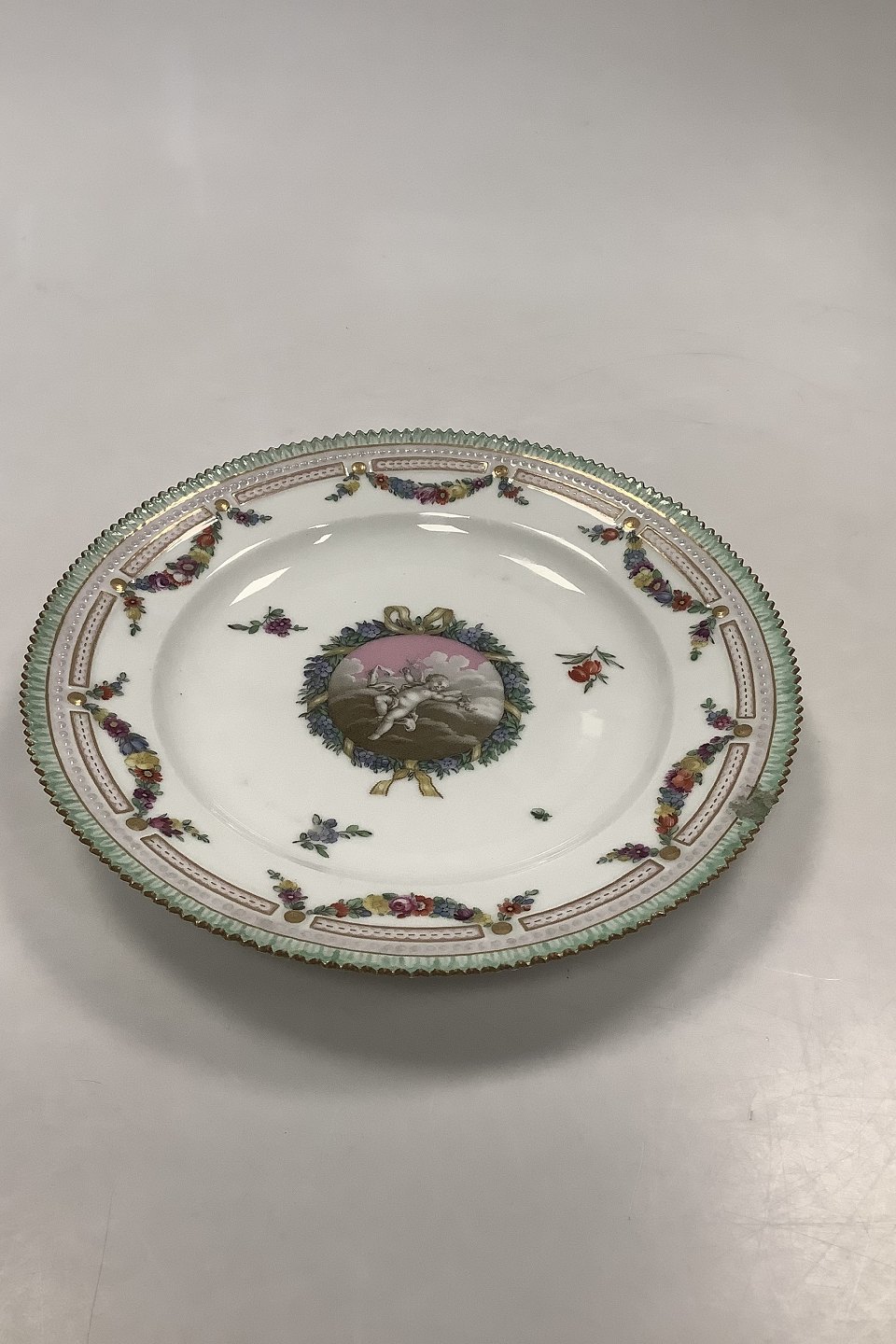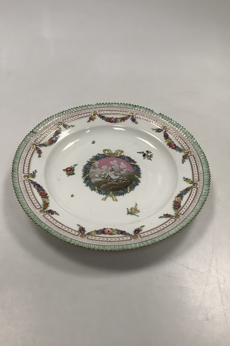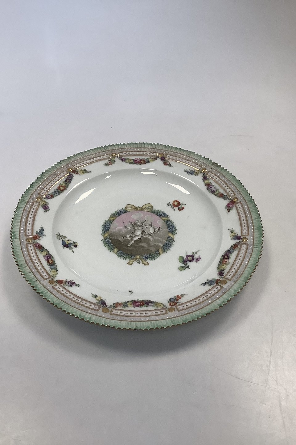 13 Royal Copenhagen Spisetallerkener Holsten-Gottorp Stellet fra 1783 ( Flora Danica Perlestel )