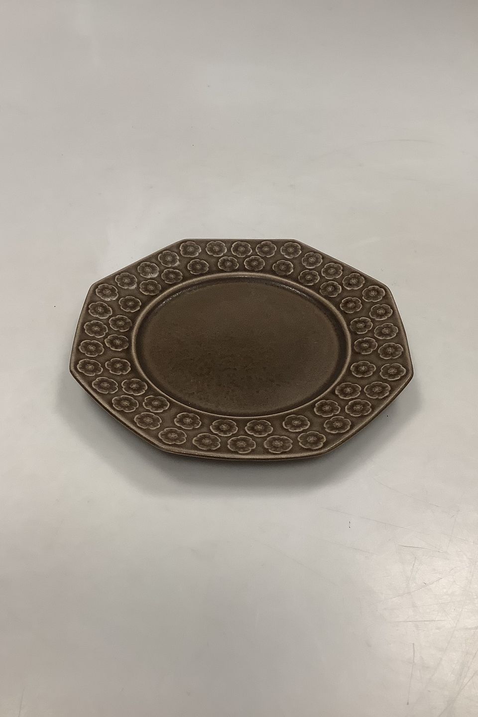 Bing og Grøndahl (Kronjyden) Brun Umbra Azur 8-kantet sidetallerken. Måler 16,5 cm / 6.50 inch