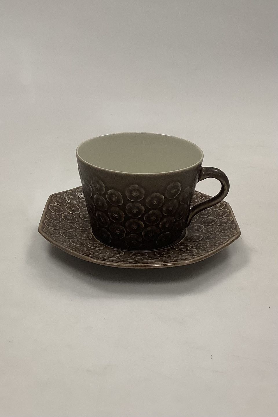 Bing & Grondahl Kronjyden Brown Umbra Azur Coffee Cup and Octogonal Saucer. Measures Cup: 6.2 cm / 2 7/16 in. x 8.8 cm / 3 15/32 in. dia. Saucer: 14.5 cm / 5 45/64 in.