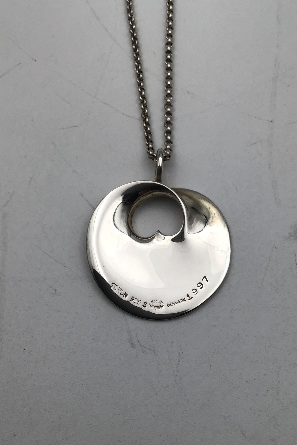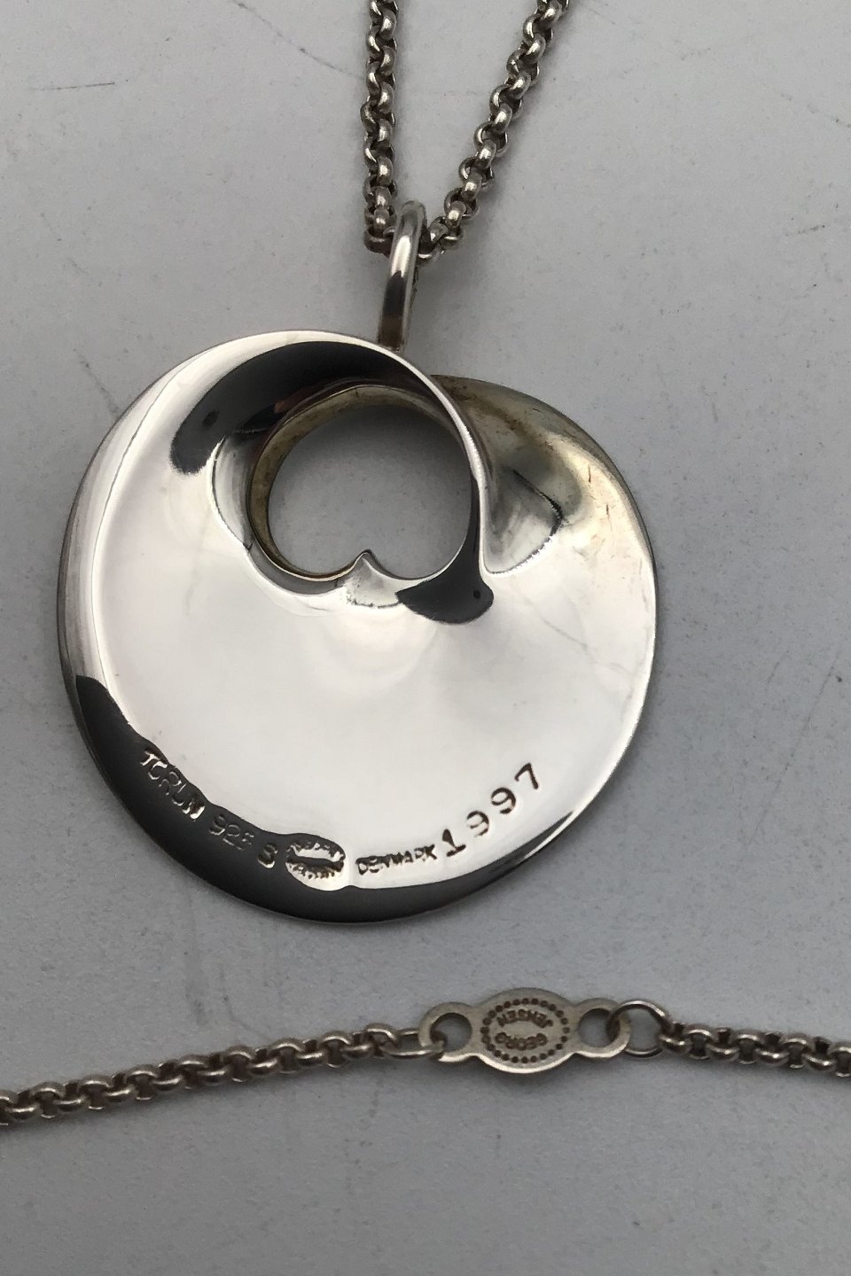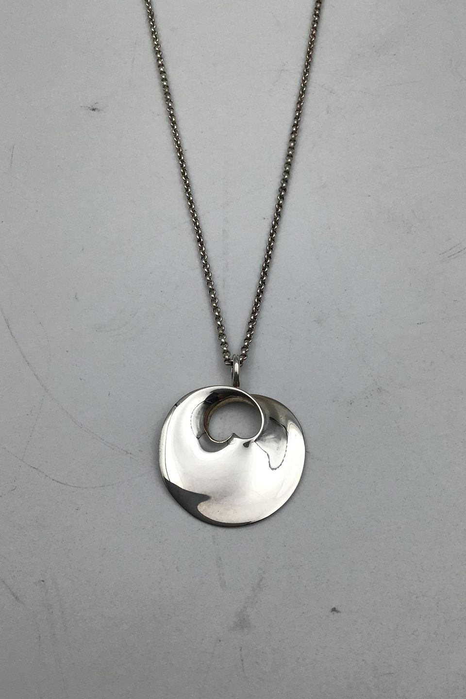Georg Jensen Sterling Sølv Vedhæng "Hidden Heart" Vivianna Torun Bülow-Hübe (1997) Mål: Kæde: 44 cm (17.2 inch), Vedhæng: 2.9 cm x 2.4 cm. Samlet vægt 6.8 gr (0.24 oz)