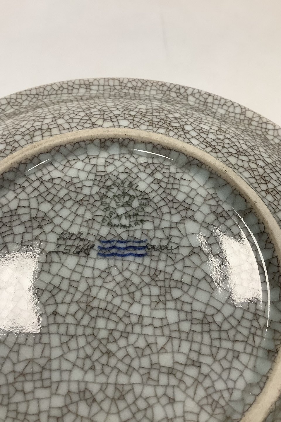 Royal Copenhagen Crackle Dish No 212/2568. Red with Black and Gold Striped Border. 18 cm dia (7 3/32"). 1st quality.