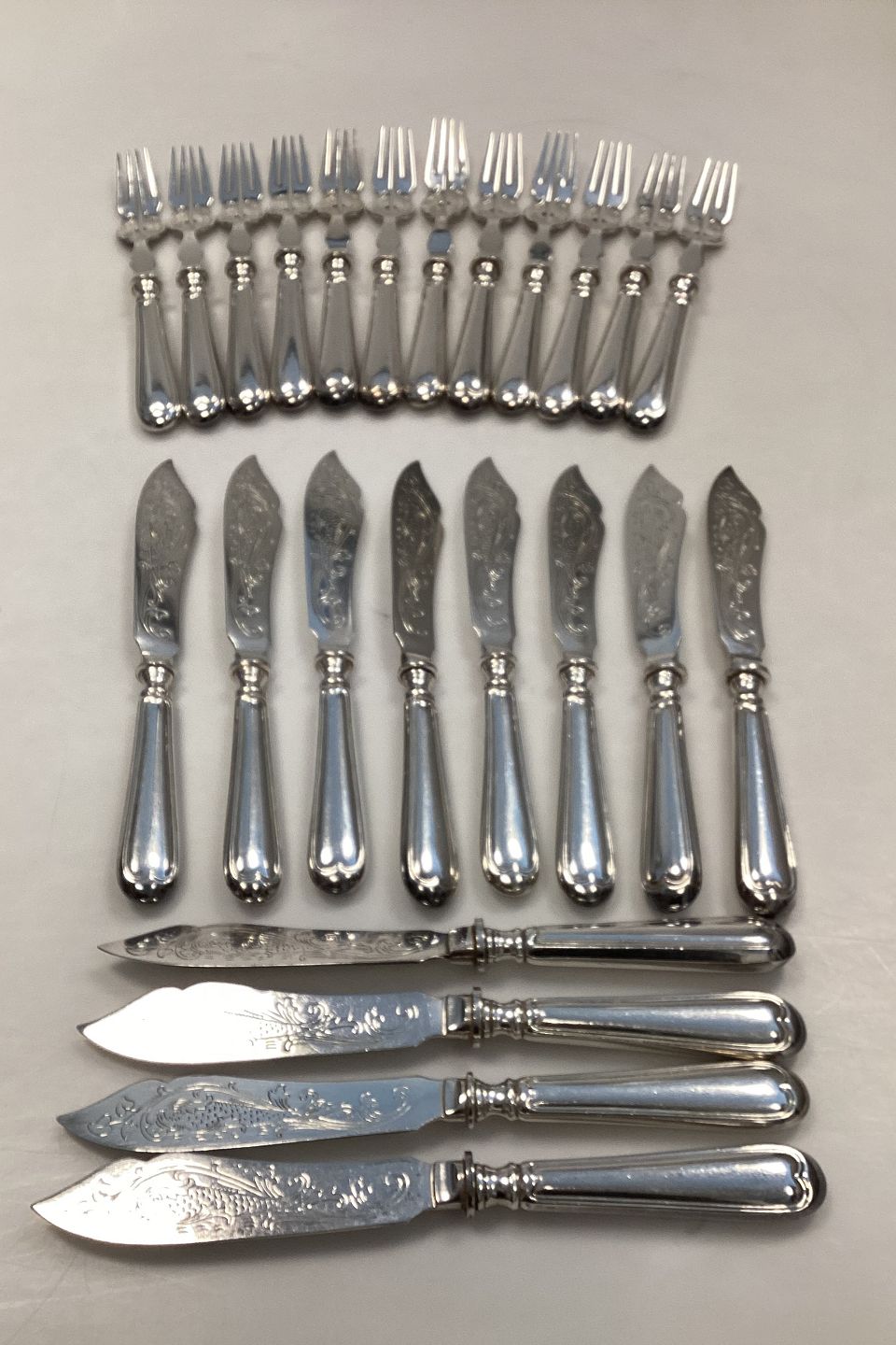 Sæt Engelsk Fiskebestik i Sølvplet til 12 personer (24 dele).