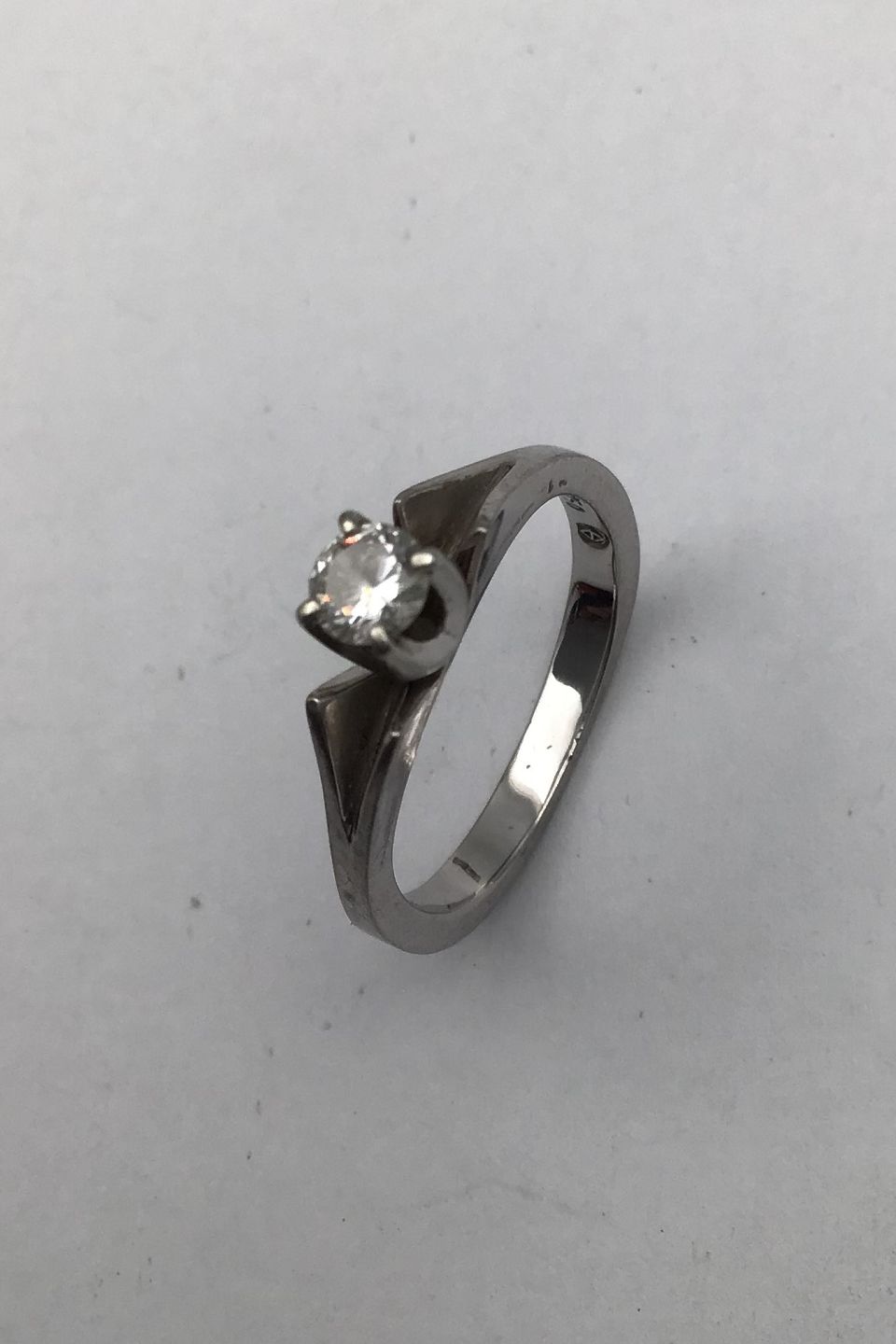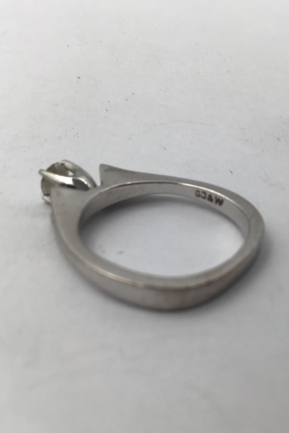 Georg Jensen og Wendel 18K Hvidguld Solitairering med Brillant Ring Str 49 (US 4 3/4) Vægt 3.7 gr (0.13 oz)