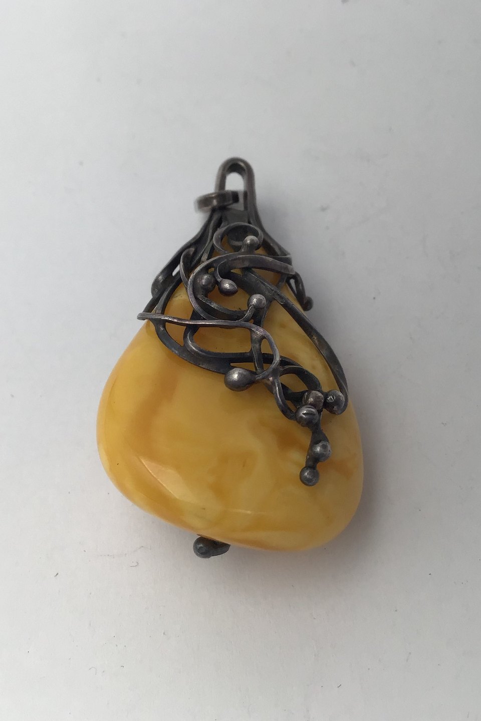 Sterling Silver Pendant with Amber Measures 5.7 cm (2.24 inch) Weight 10.3 gr (0.36 oz)