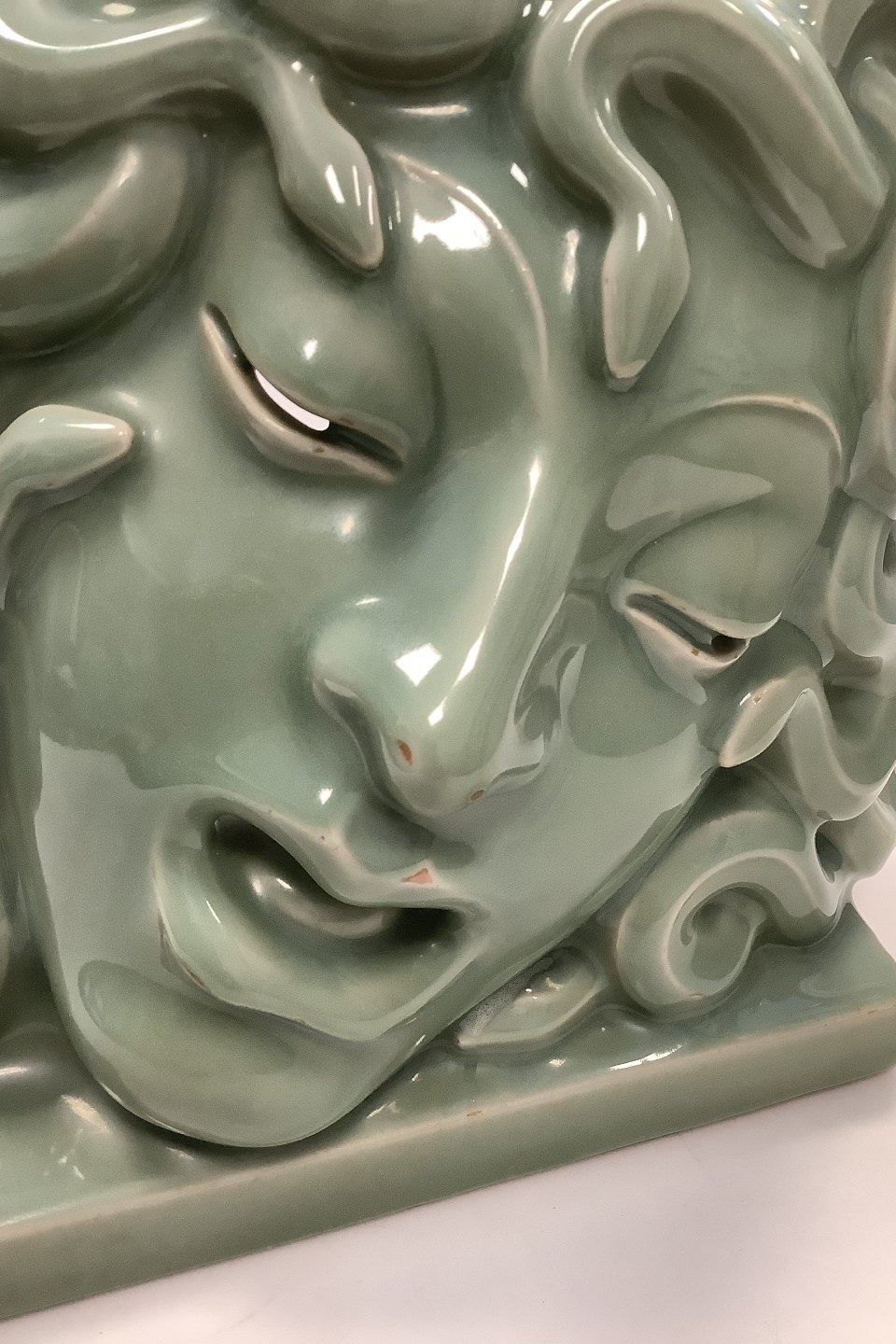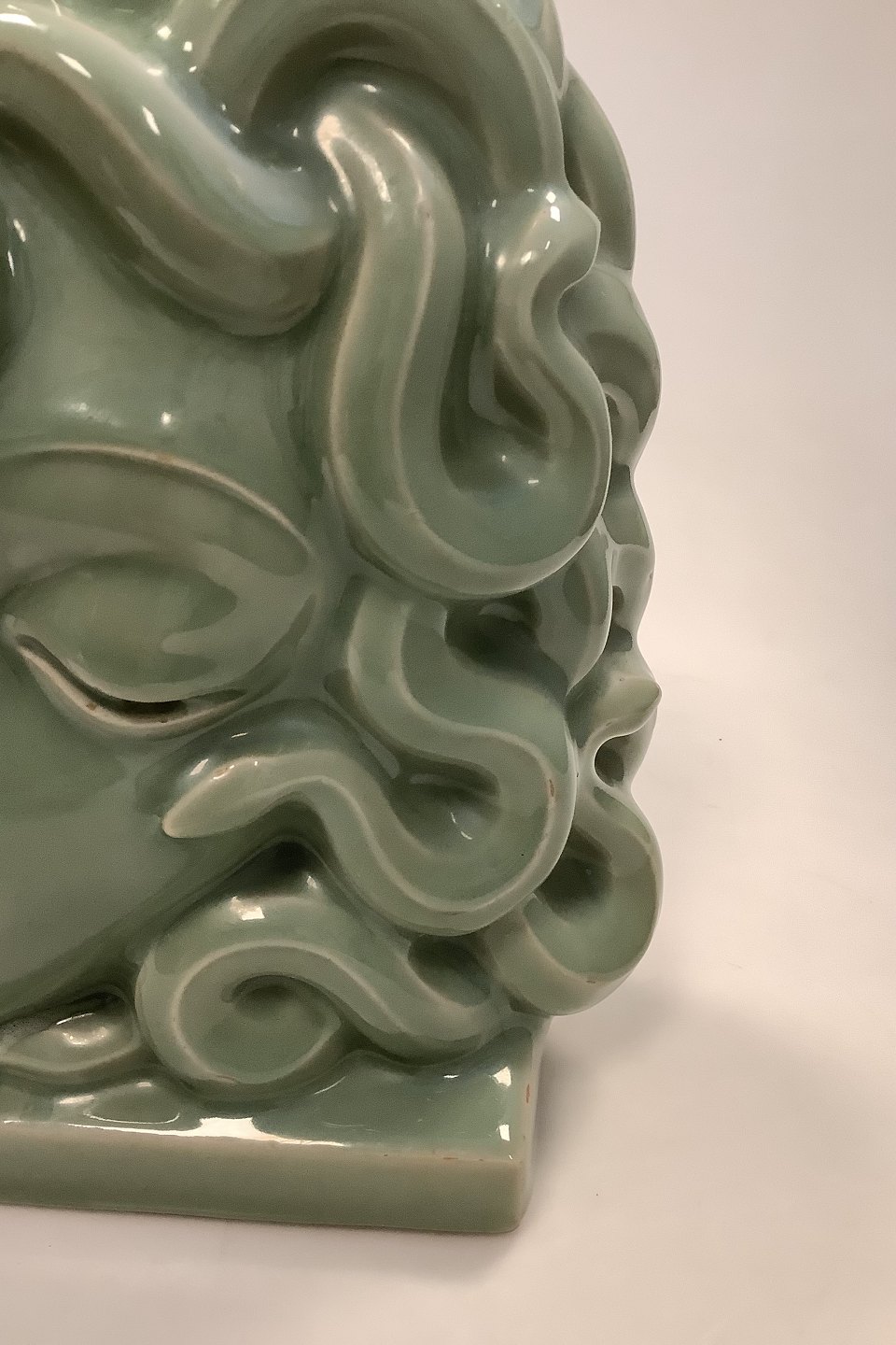 Royal Copenhagen Green Celadon Mask, Medusa, Designed by Hans Henrik Hansen 1927, No 2950.