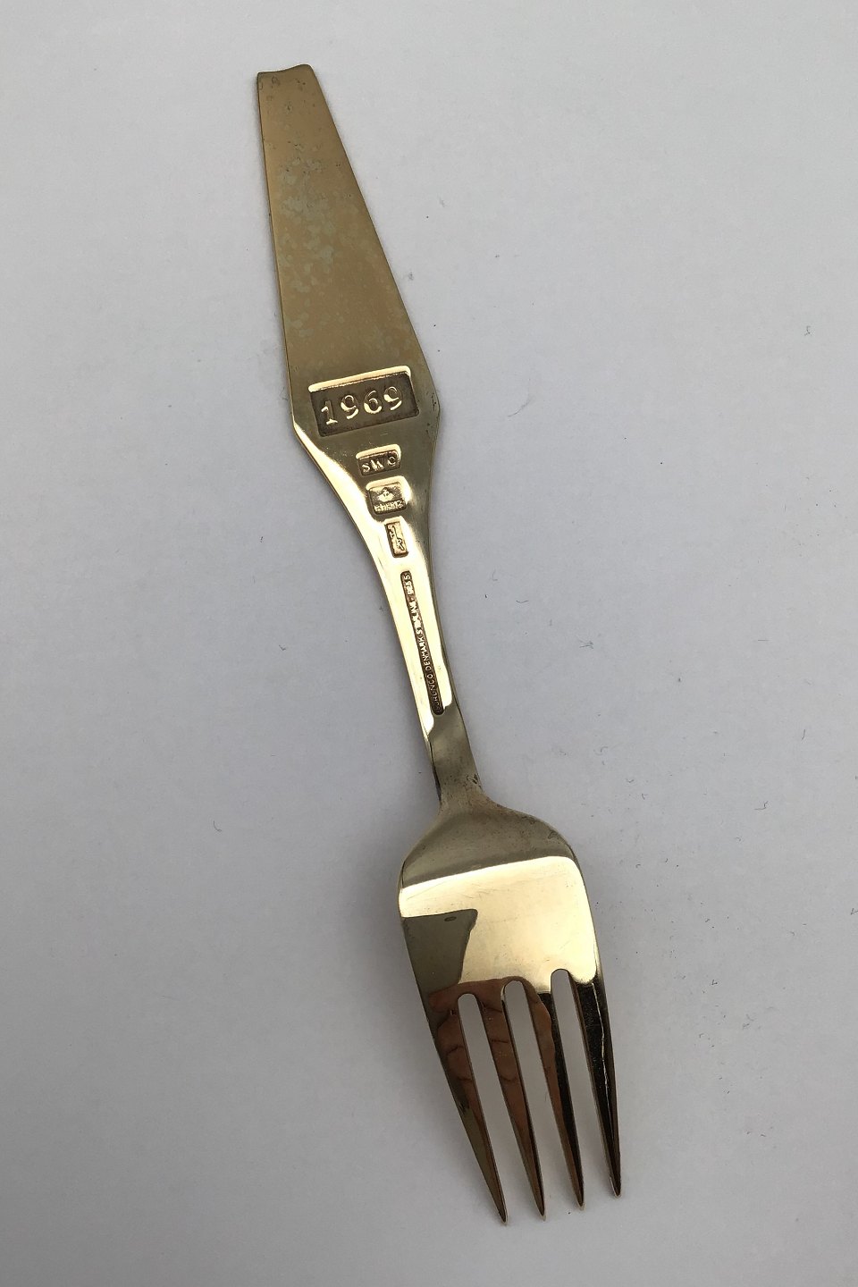 Sorenco Christmas Spoon 1969 made of gilded sterling silver with enamel. Measures 16,3 cm (6.41 inch)