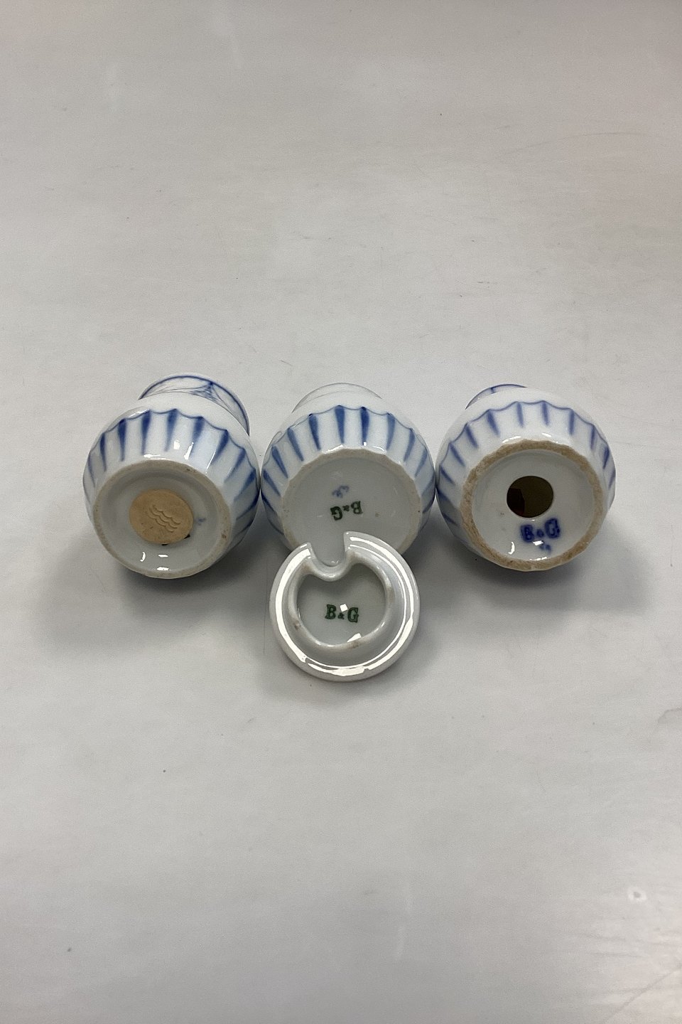 Bing and Grondahl Empire Plat de ménage No. 52. Triangular holder with seahorse handle. Carry mustard jar, salt and pepper shakers.