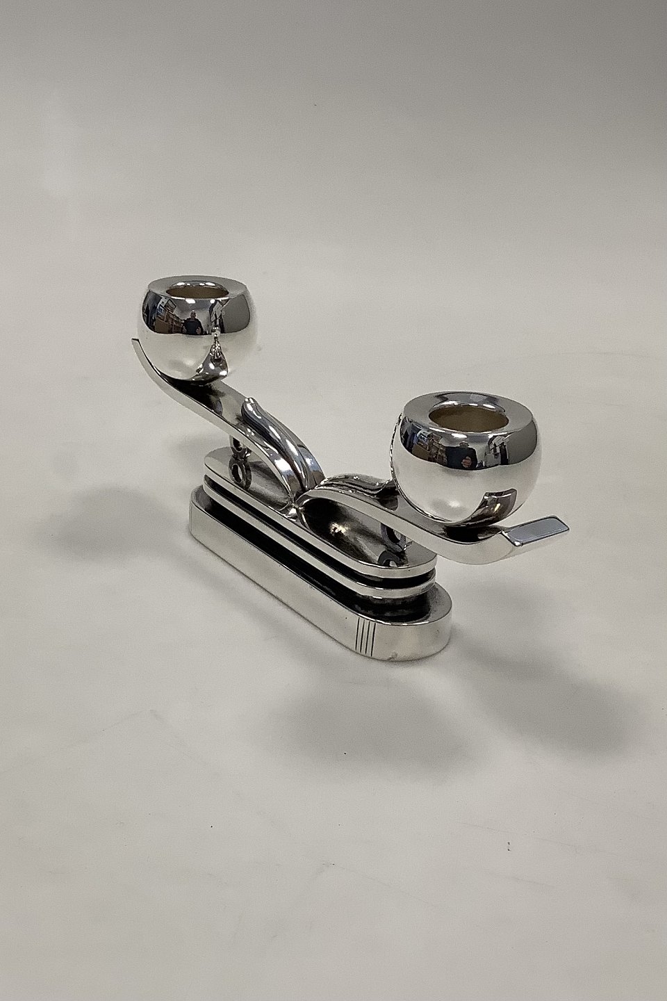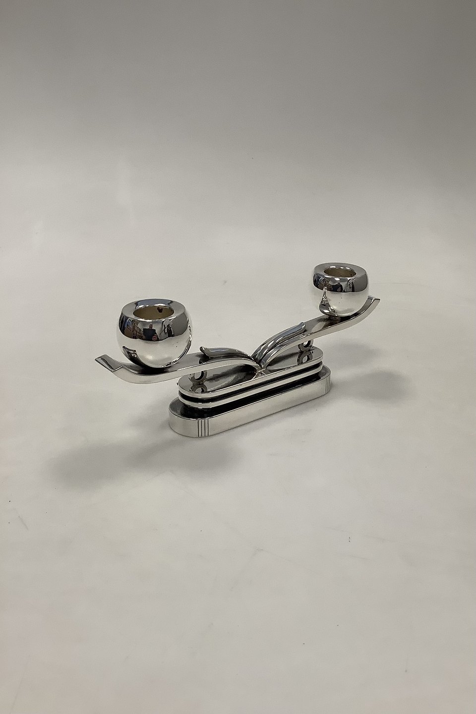 Hans Hansen Sterling Sølv 2-armet Art Deco lysestage af Karl Gustav Hansen no 197
