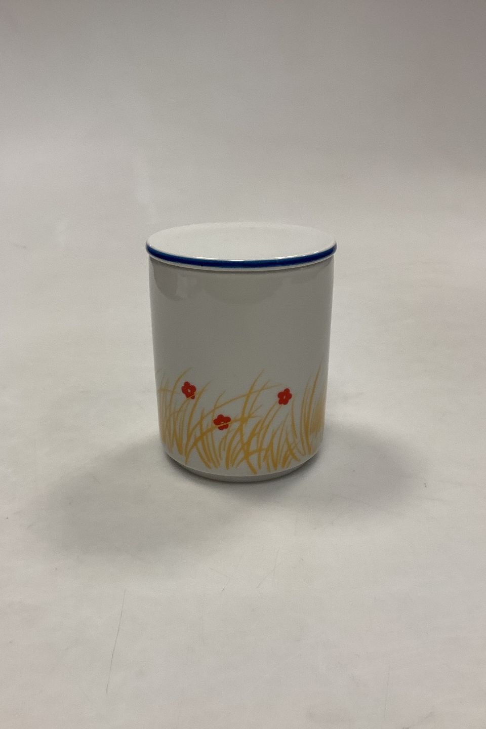 Royal Copenhagen Picnic Jar with Lid No. 6311/6312. Designed by Grethe Meyer and Ole Kortzau. Measures 8 cm x 10 cm / 3.14 in. x 3.93 in.