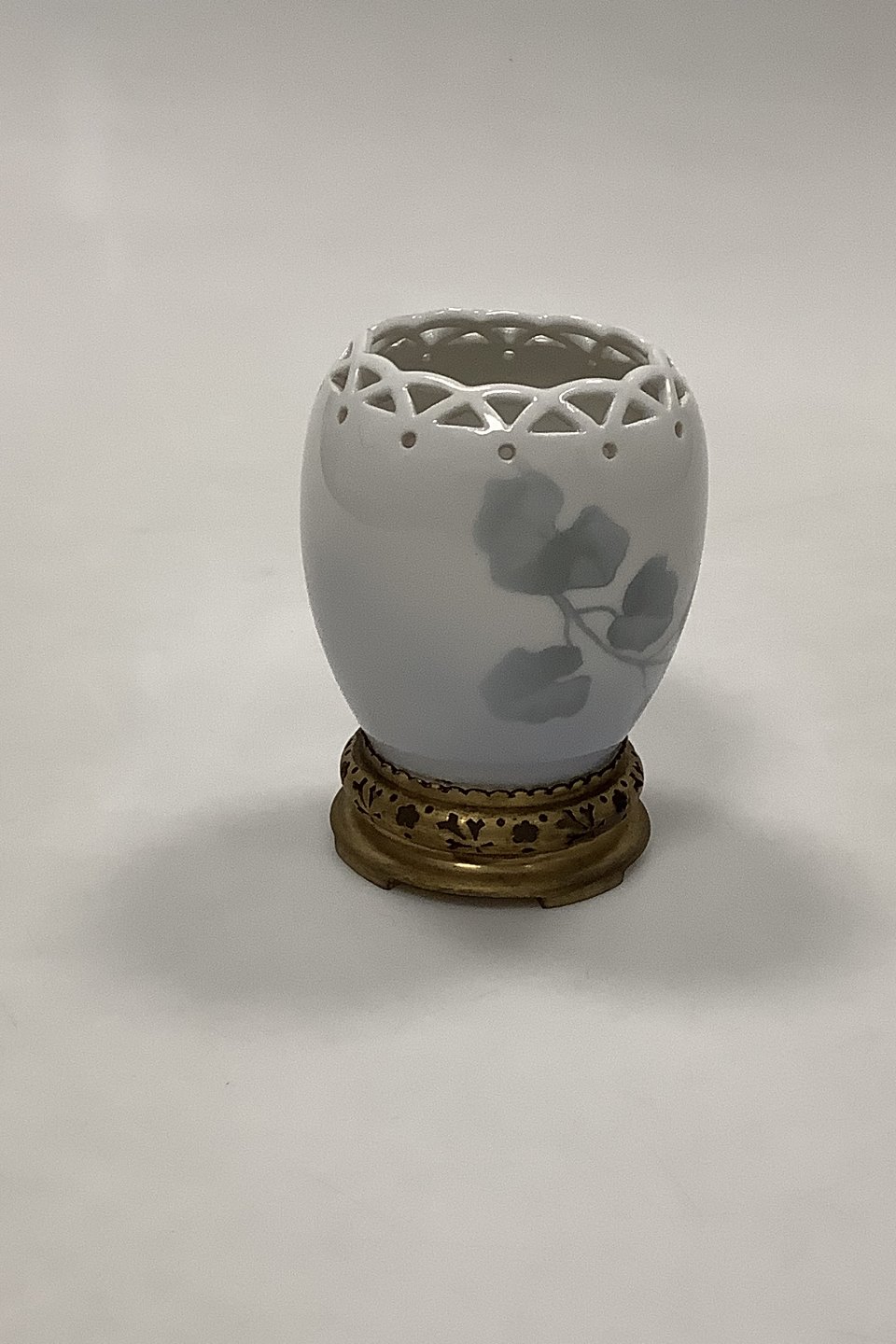 Royal Copenhagen Art Nouveau Vase with Motif of a Dragonfly and Bronze base No 974 / 225