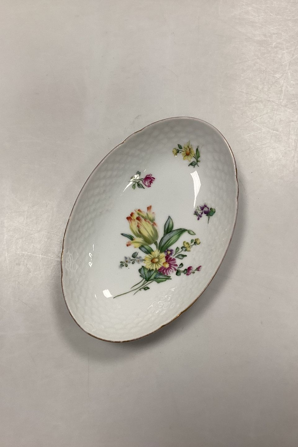 Bing og Grøndahl Saksisk Blomst, Hvid Oval Skål No. 39