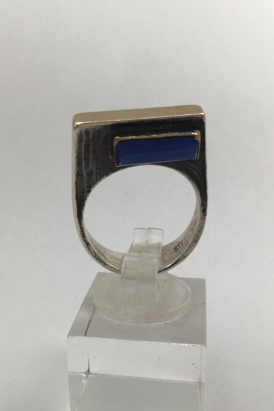 (Ole W Jacobsen) Sterling Silver / Gold Ring with gemstones Measures Ring Size 53 (US 6 1/2) Weight 7.9 gr (0.28 oz) (NOTE Resized, no OWJ mark )