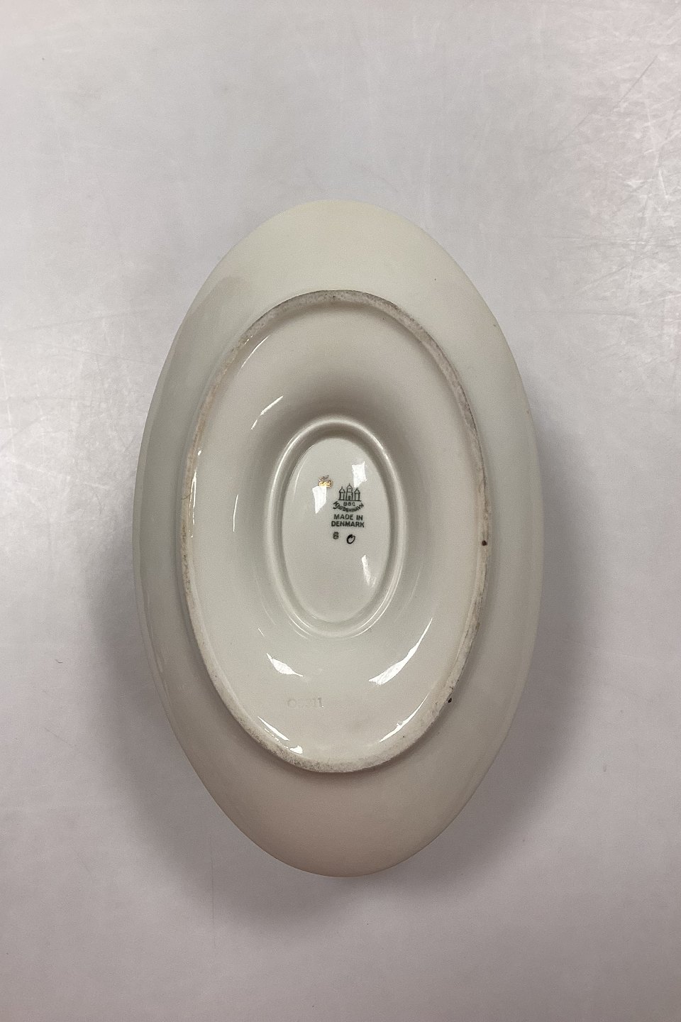 Bing og Grøndahl Hermod Sauceskål No. 8. Skålen måler 11 cm x 21 cm / 4.34 in x 8.27 in. Indhold. 3,5 dl / 12 oz.