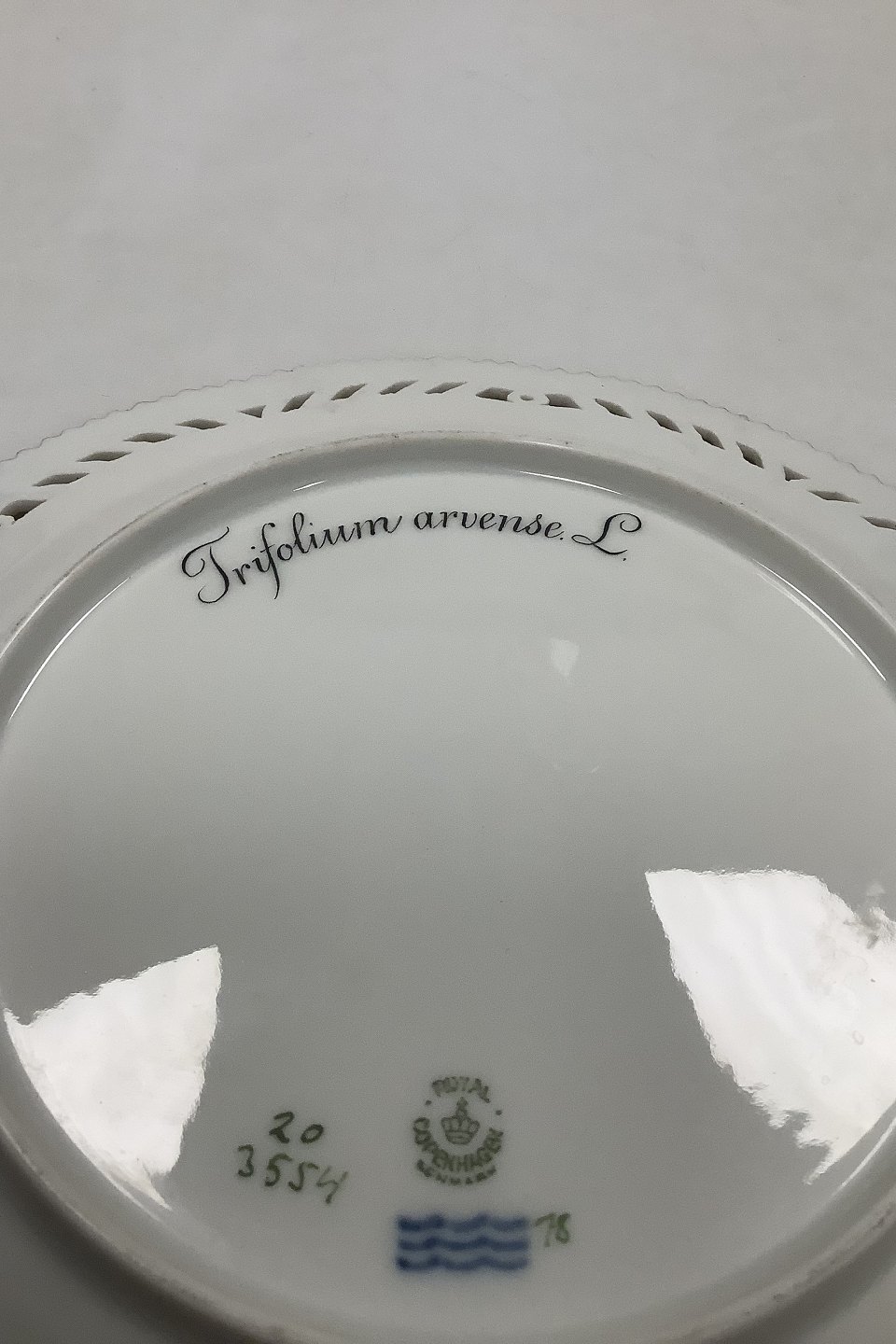 Royal Copenhagen Flora Danica Frokosttallerken No 20/3554 med gennembrudt kant. Latinsk Navn: Trifolium avense L. Måler 23 cm. (9.05 inch) 1. Sort.
