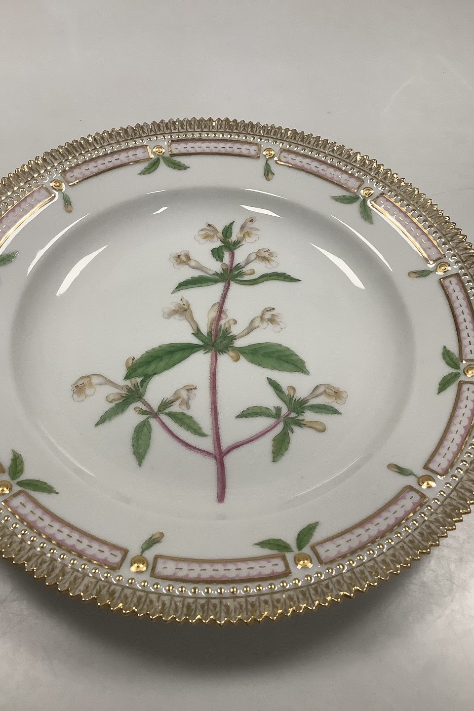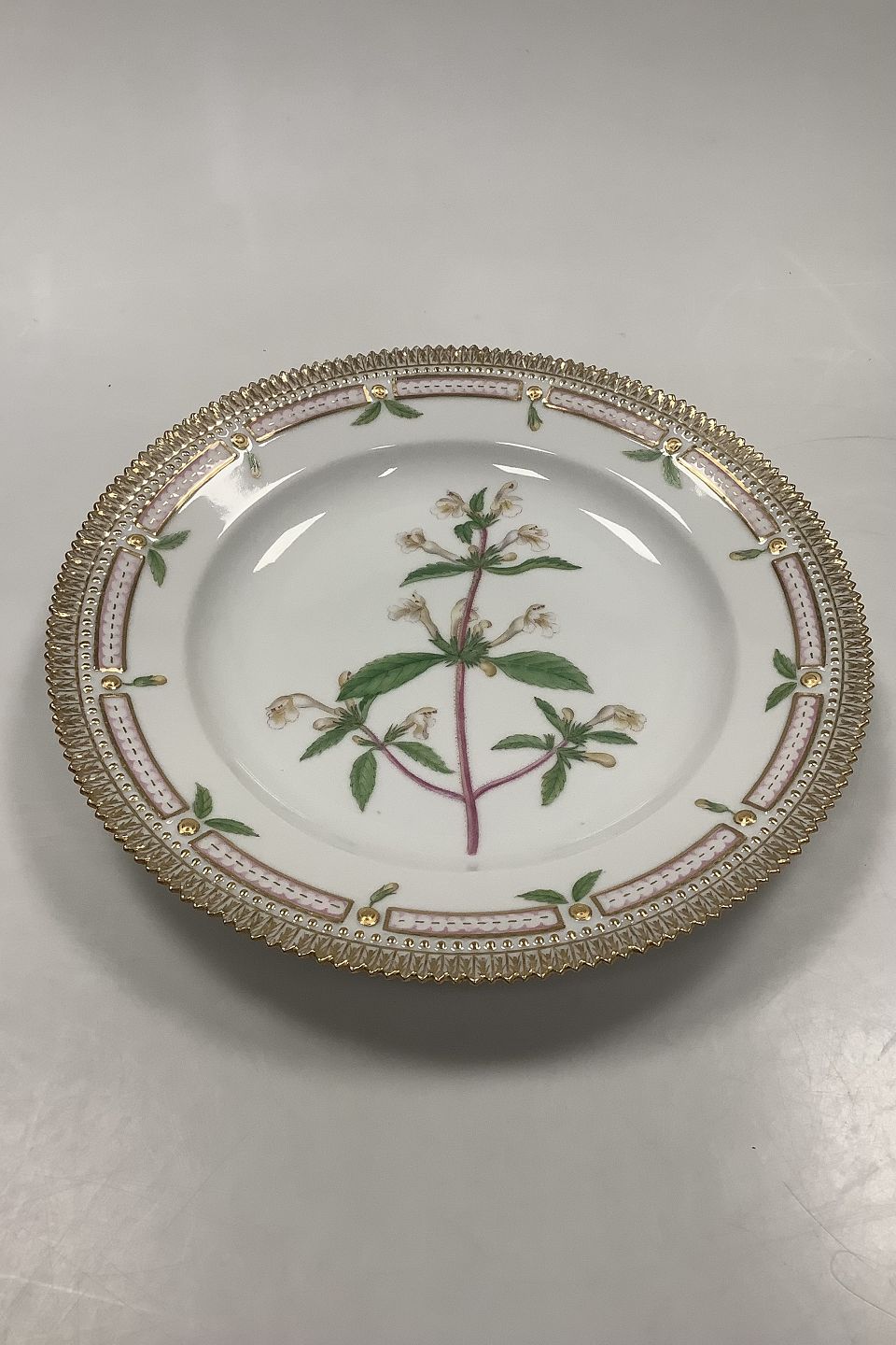 Royal Copenhagen Flora Danica Spisetallerken No. 624 (20/3549) Måler Diam 26 cm. (10.23 inch) 1. Sortering. Latinsk Navn: Galeopsis ochroleuea Law.
