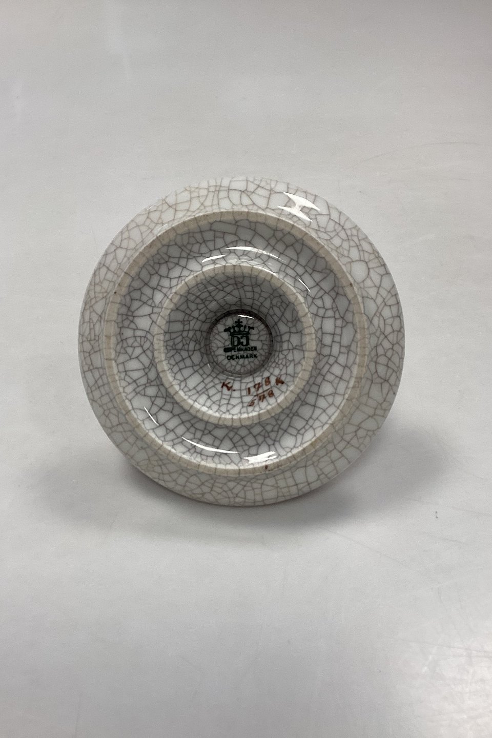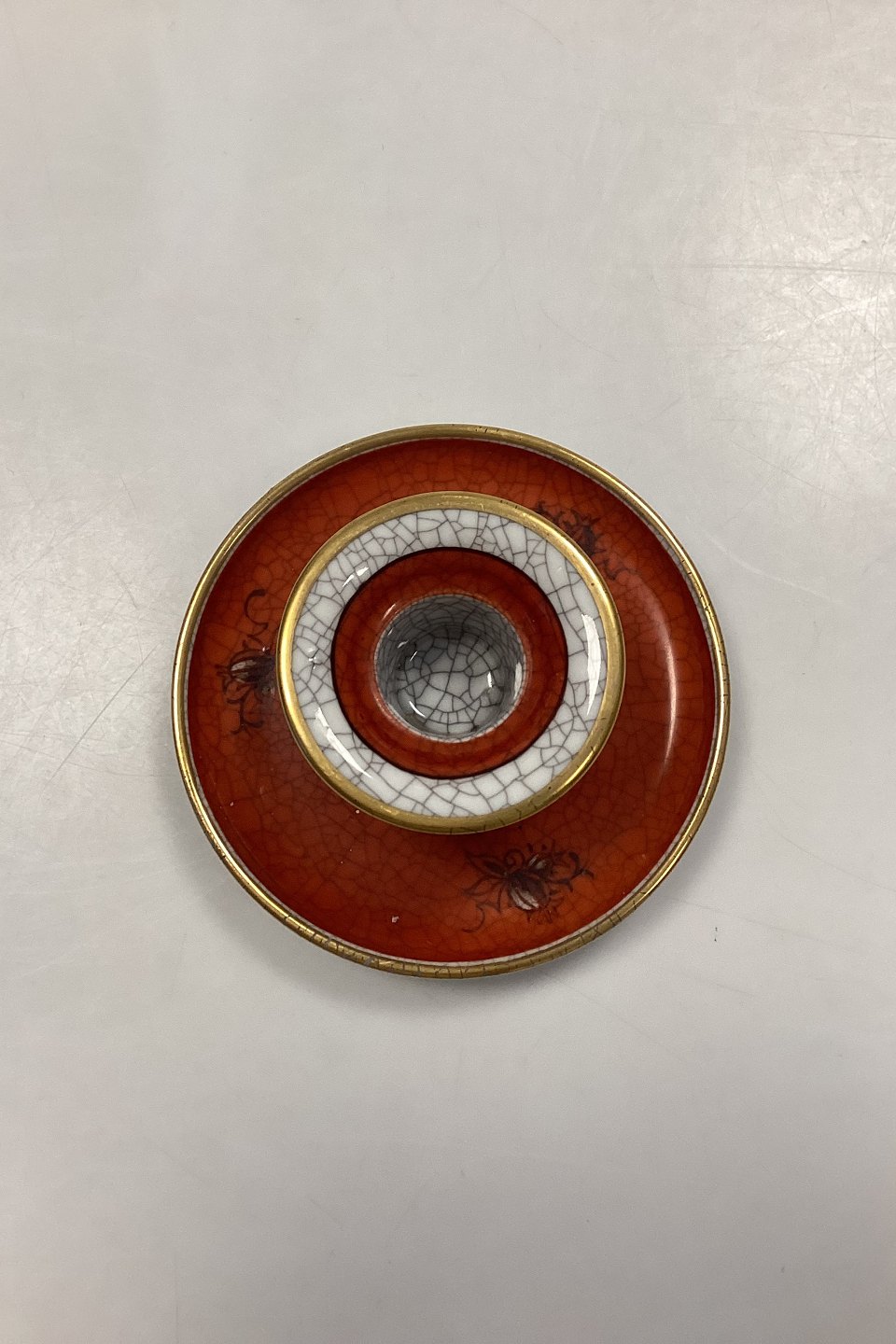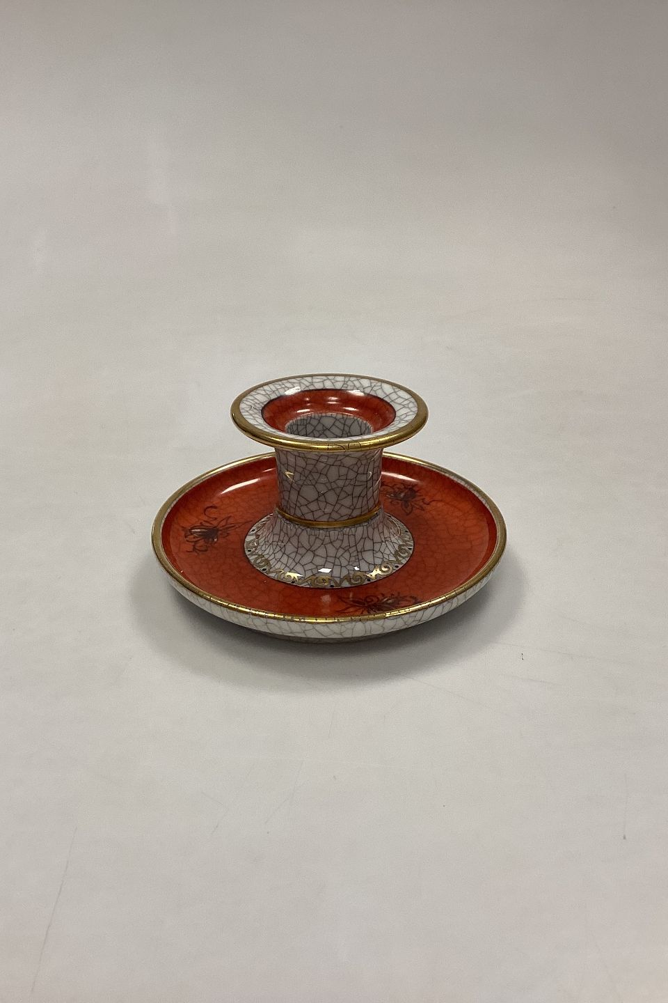 Dahl Jensen Cracked Glaze Candlestick No. 178/578. Decoration in siena red, white and gold. Measures 6 cm x 12.5 cm / 2.37 in. x 4.93 in.