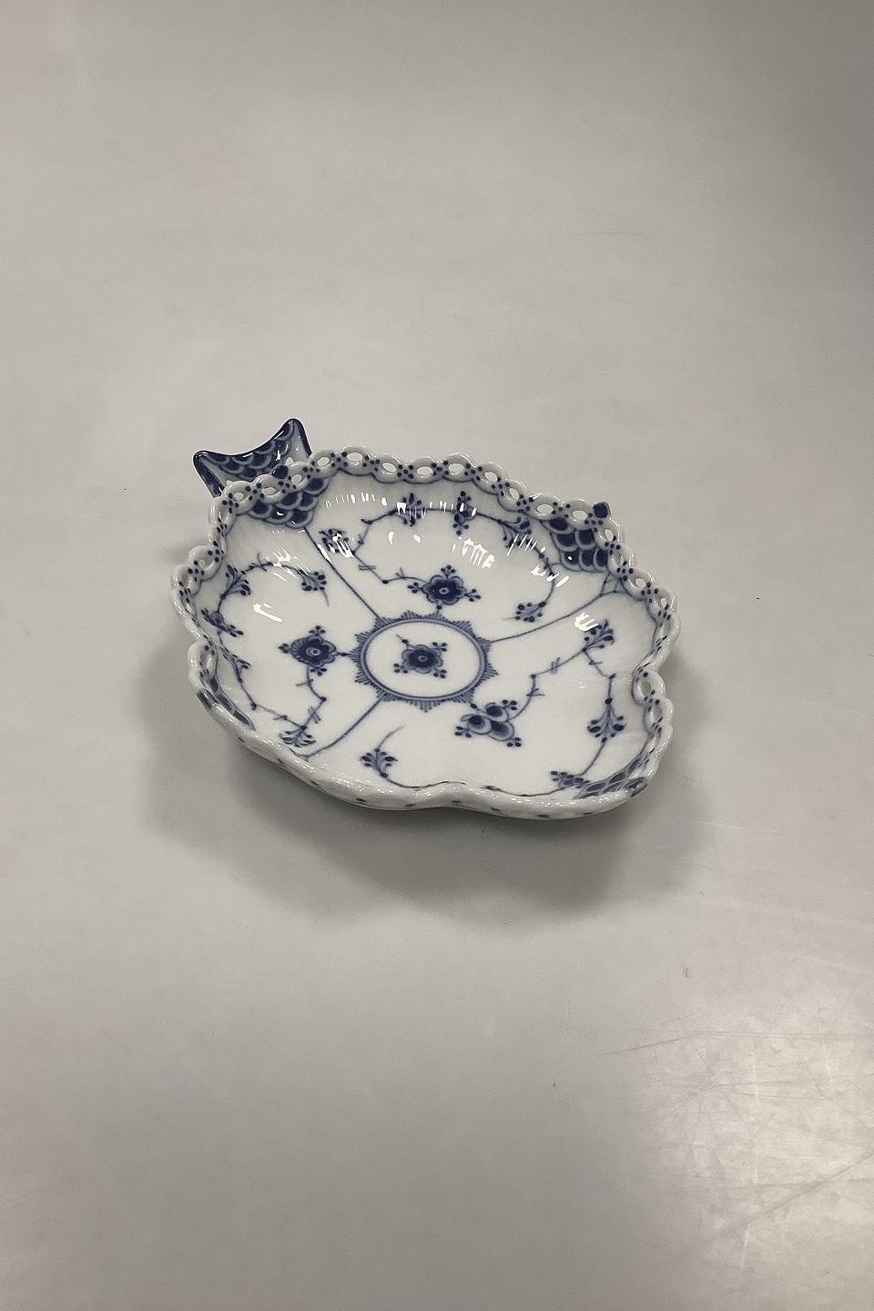 Royal Copenhagen Musselmalet Helblonde Bladformet fad No 1076. 1. sortering. Måler 18,5 cm ( 7 9/32 in. ).